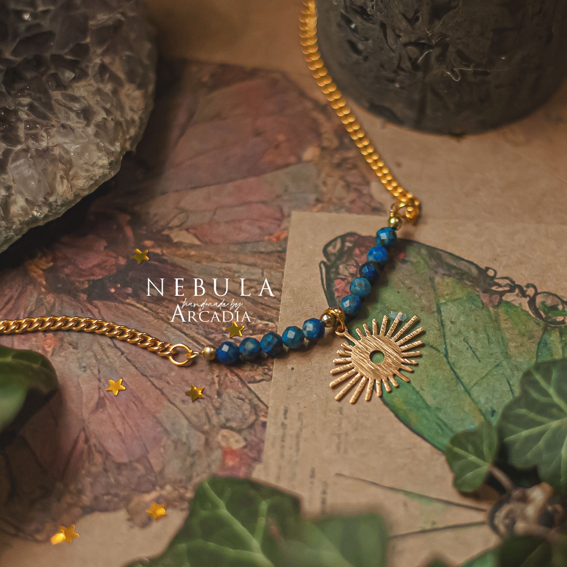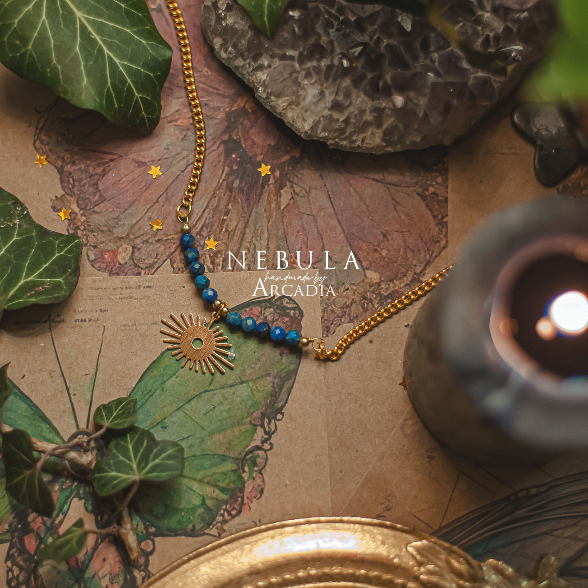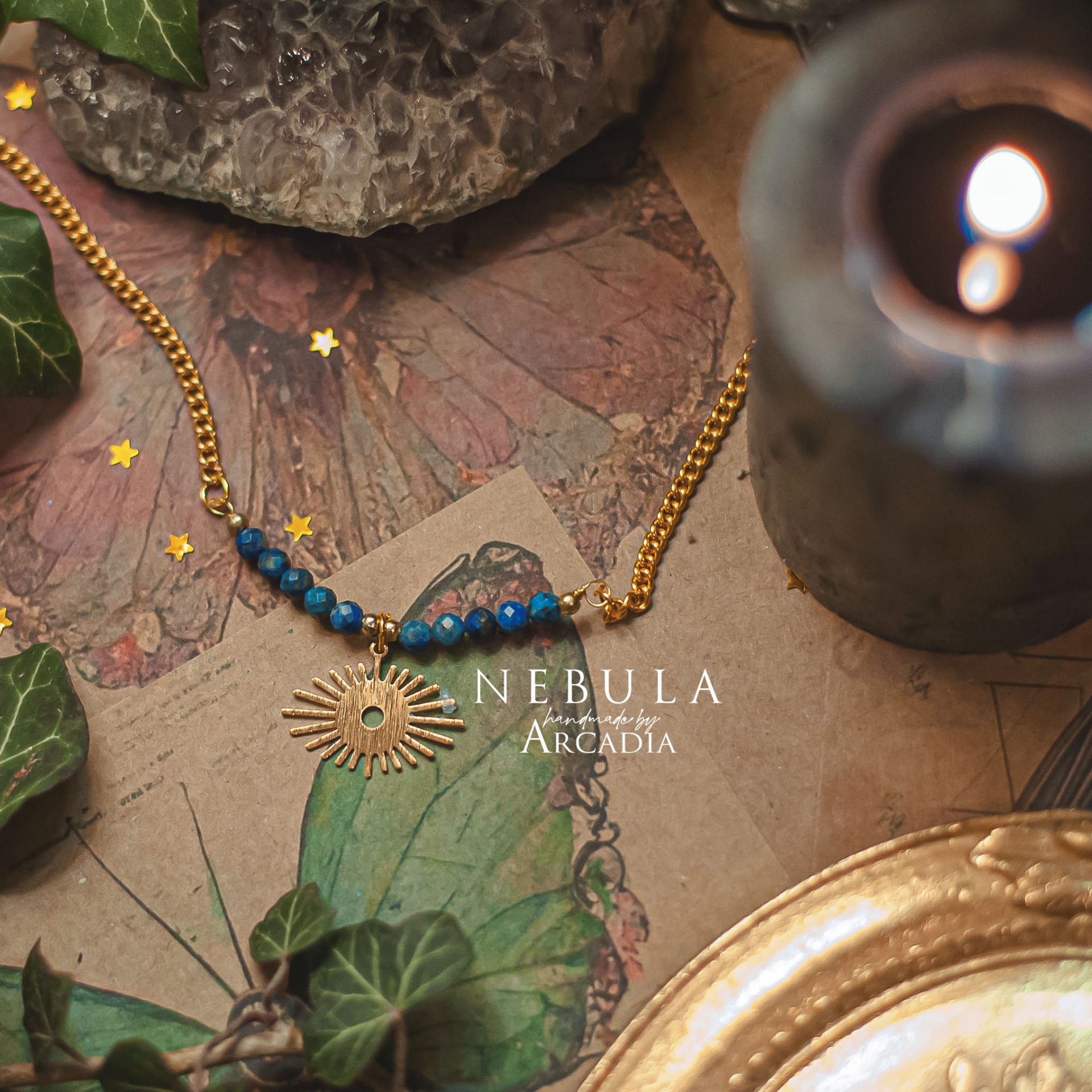 Náhrdelník s perličkami broušeného lapis lazuli a mosazným přívěskem symbolizujícím Třetí oko. Tento amulet vám pomůže ponořit se hlouběji do své intuice a dohlédnout i tam, kam běžný zrak nedohlédne. Vyrobeno rukama a srdcem v alchymistické dílně na severu Čech.