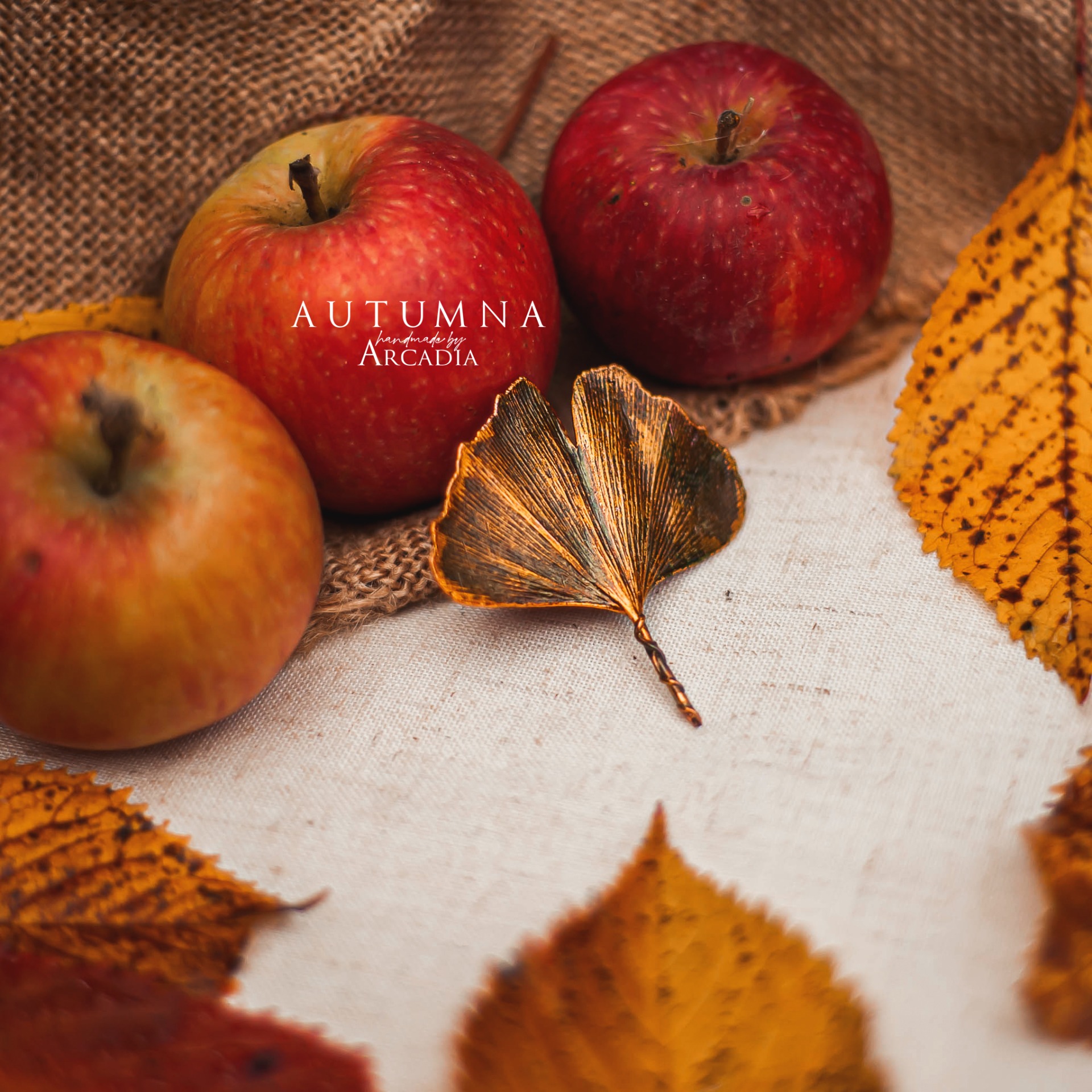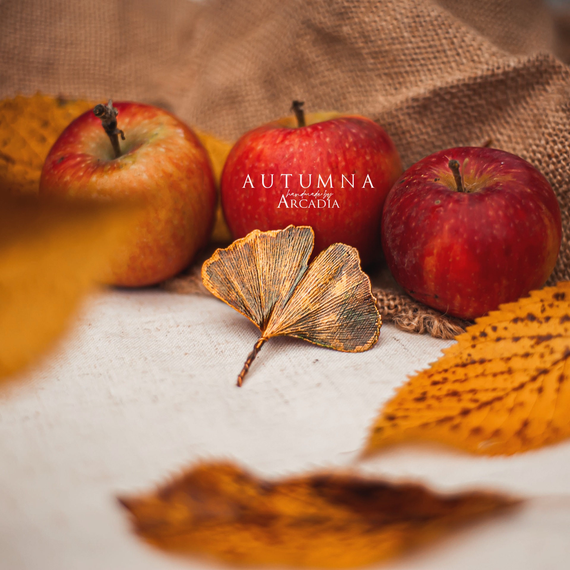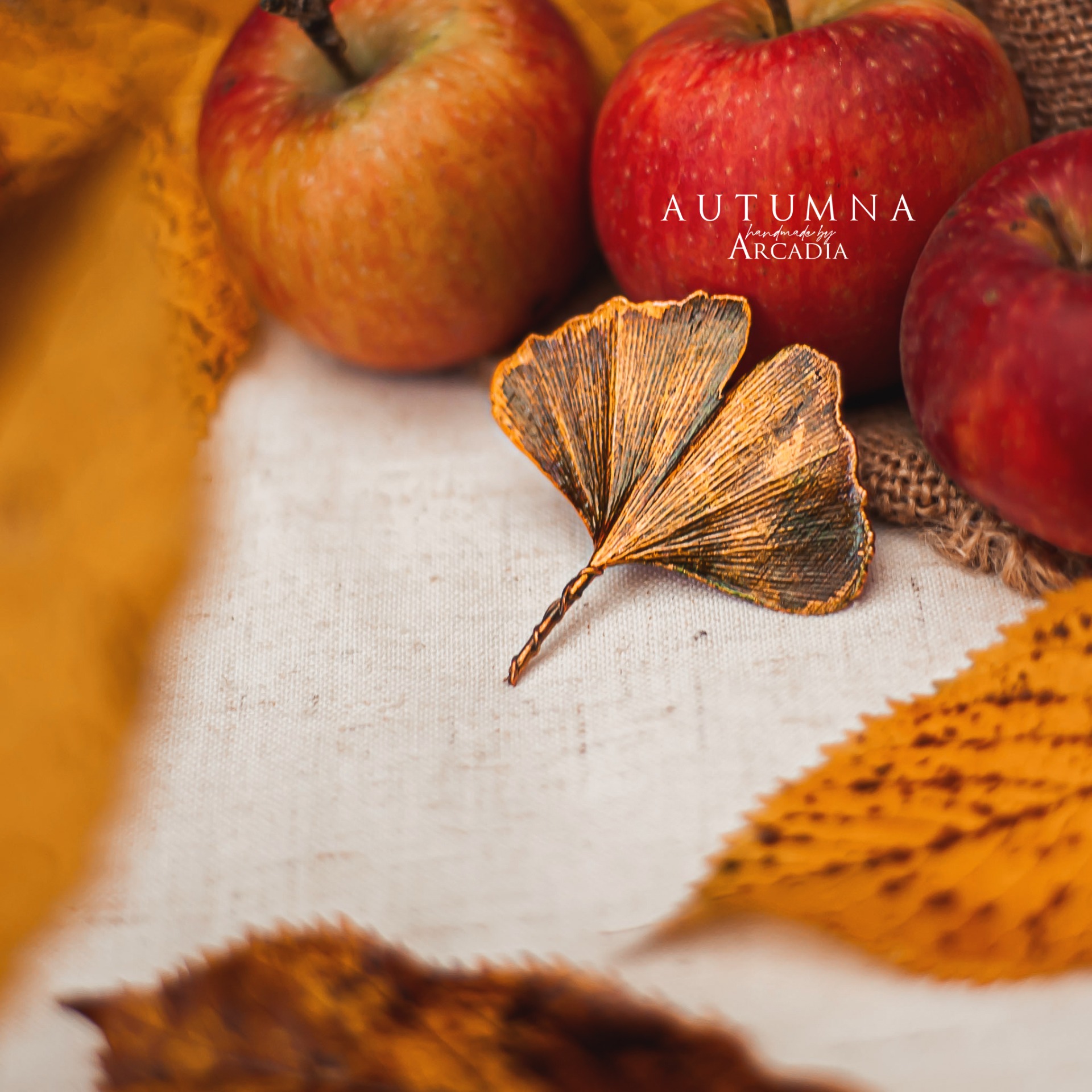 Brož ze skutečného pokoveného lístku ginka ve žlutozelenkavých odstínech. Vyrobeno rukama a srdcem v alchymistické dílně na severu Čech.