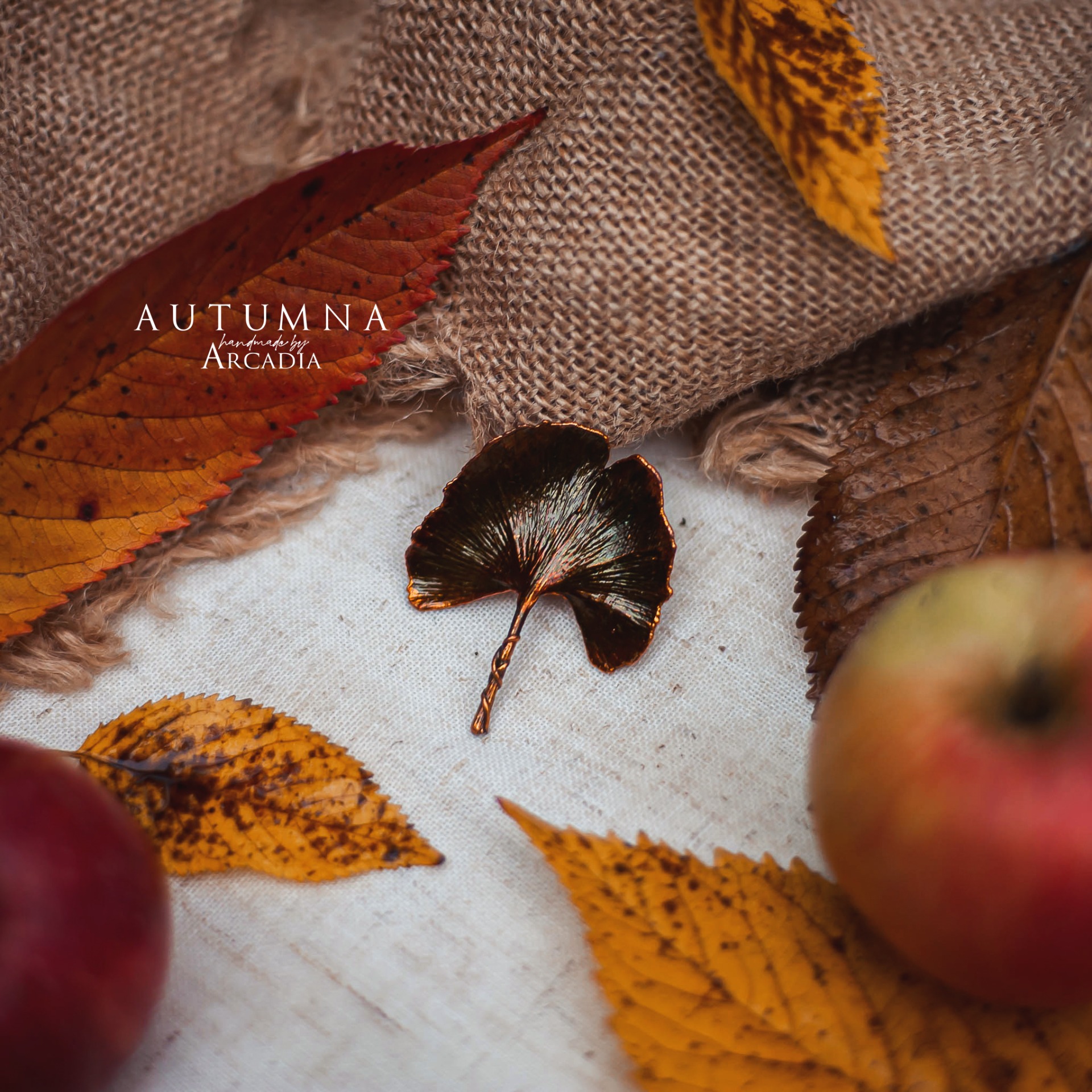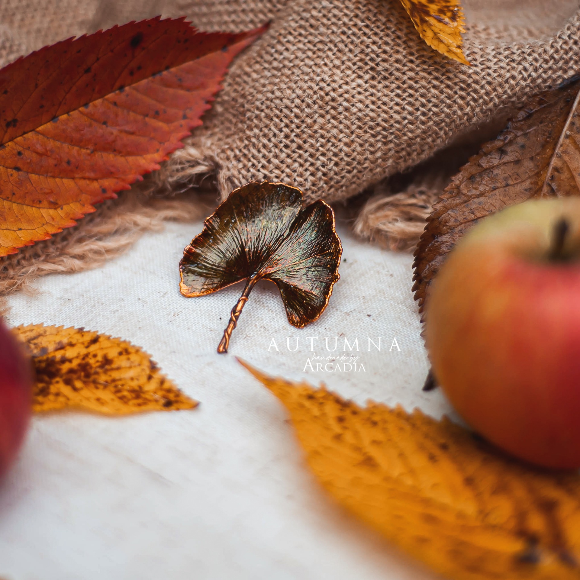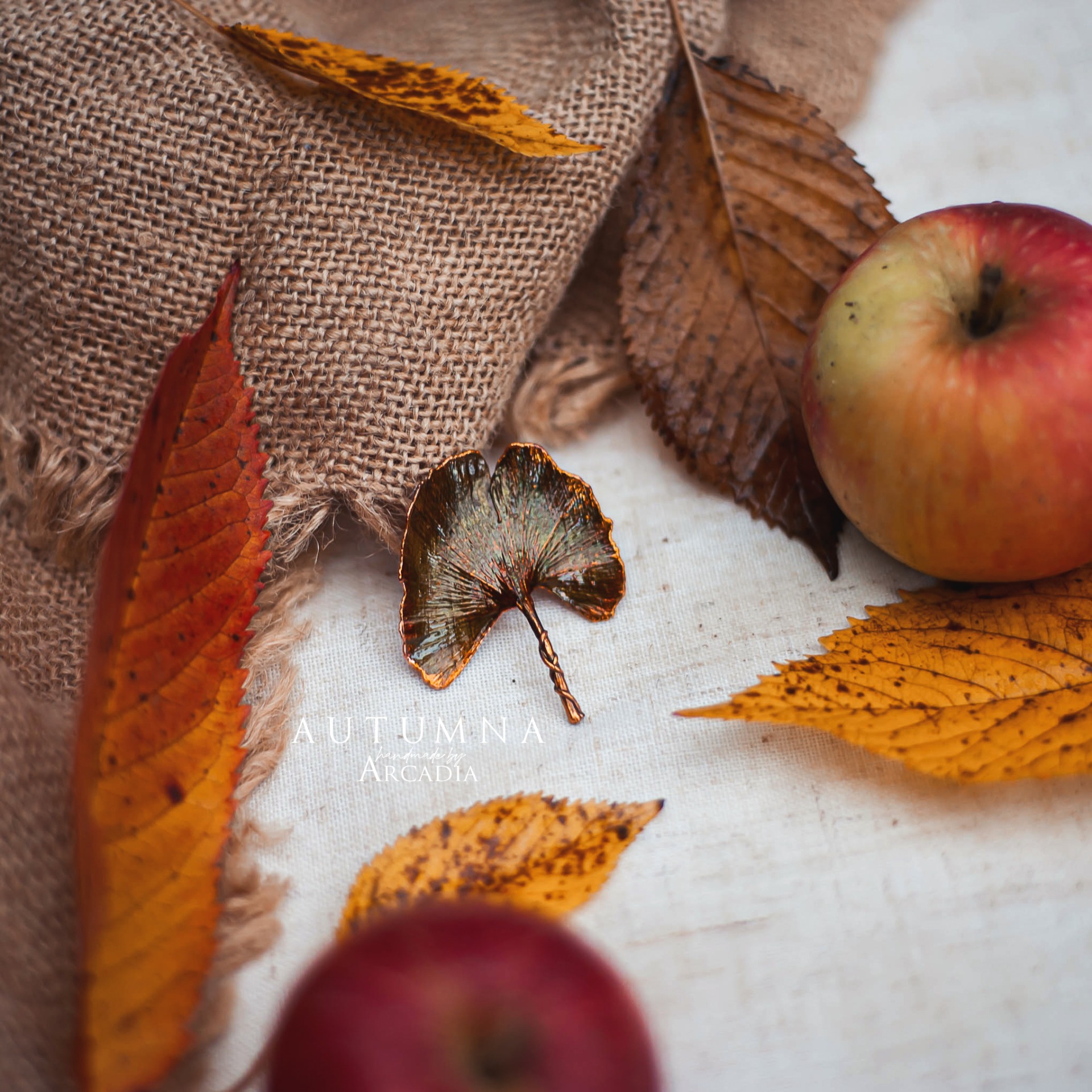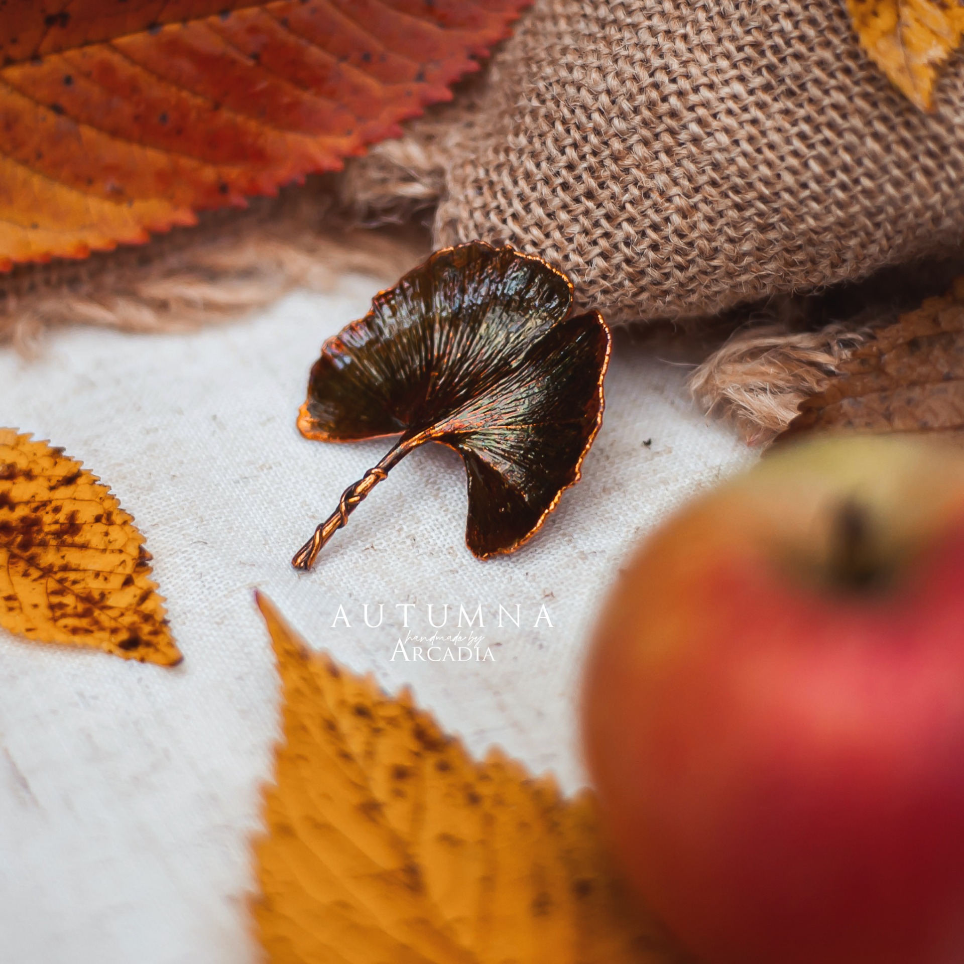 Brož ze skutečného pokoveného lístku ginka ve žlutozelenkavých odstínech. Vyrobeno rukama a srdcem v alchymistické dílně na severu Čech.