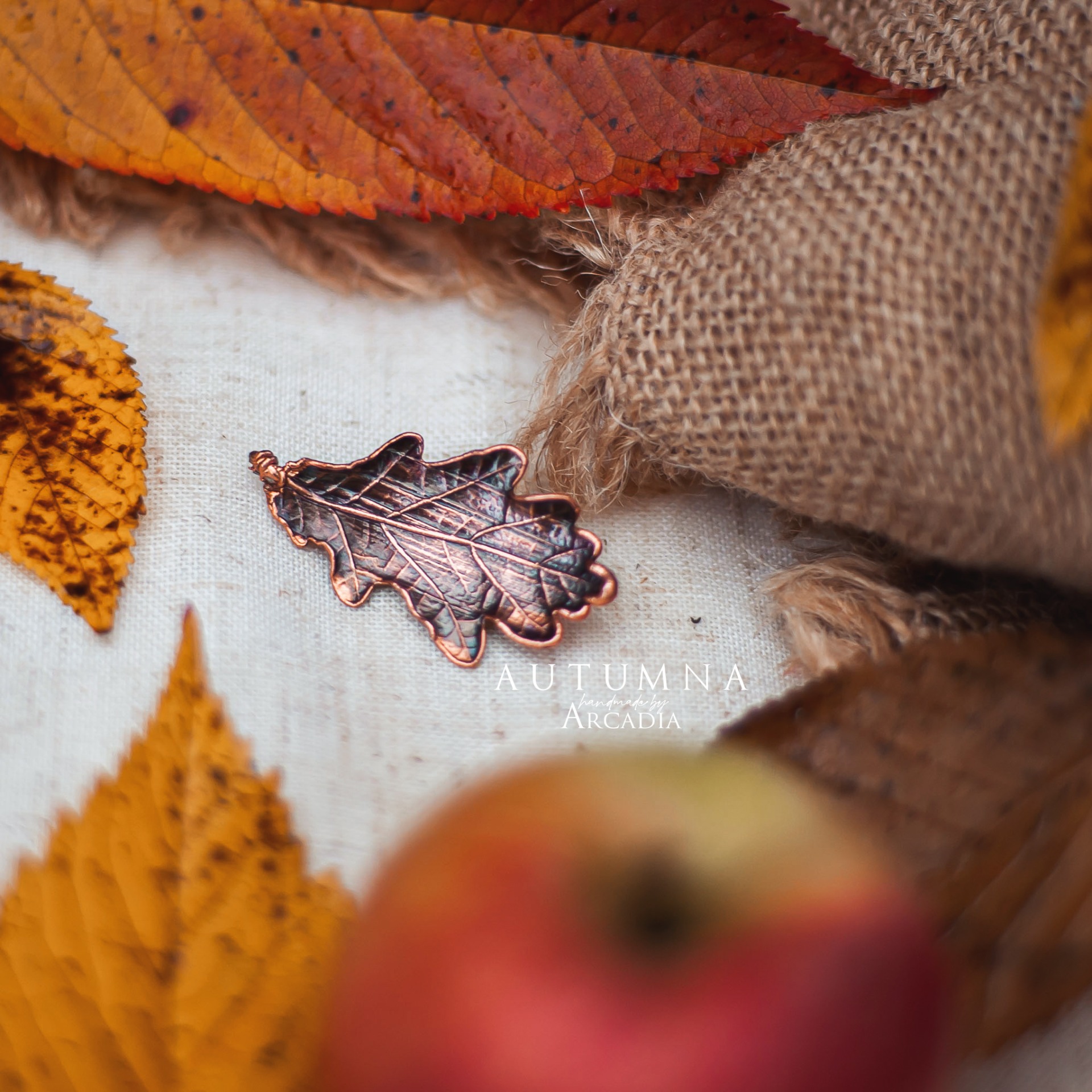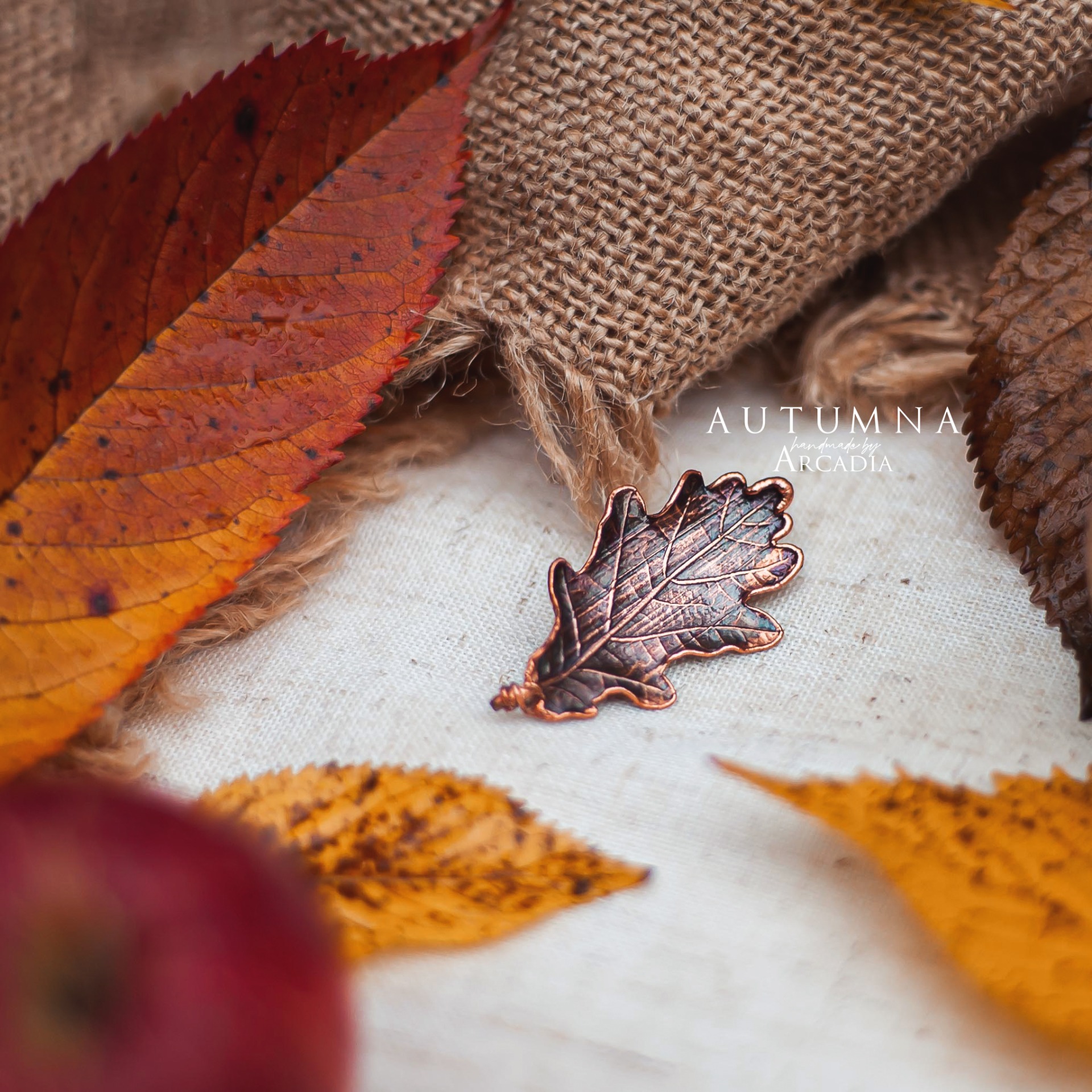 Brož ze skutečného pokoveného drobroučkého lístku dubu v rustikální antické patině. Vyrobeno rukama a srdcem v alchymistické dílně na severu Čech.