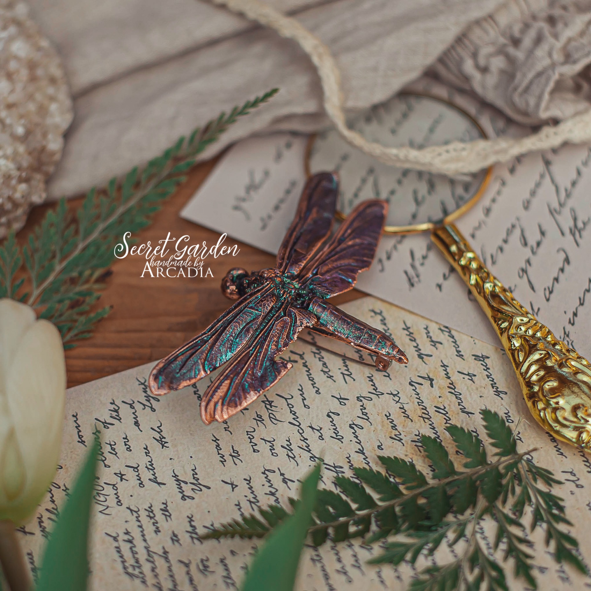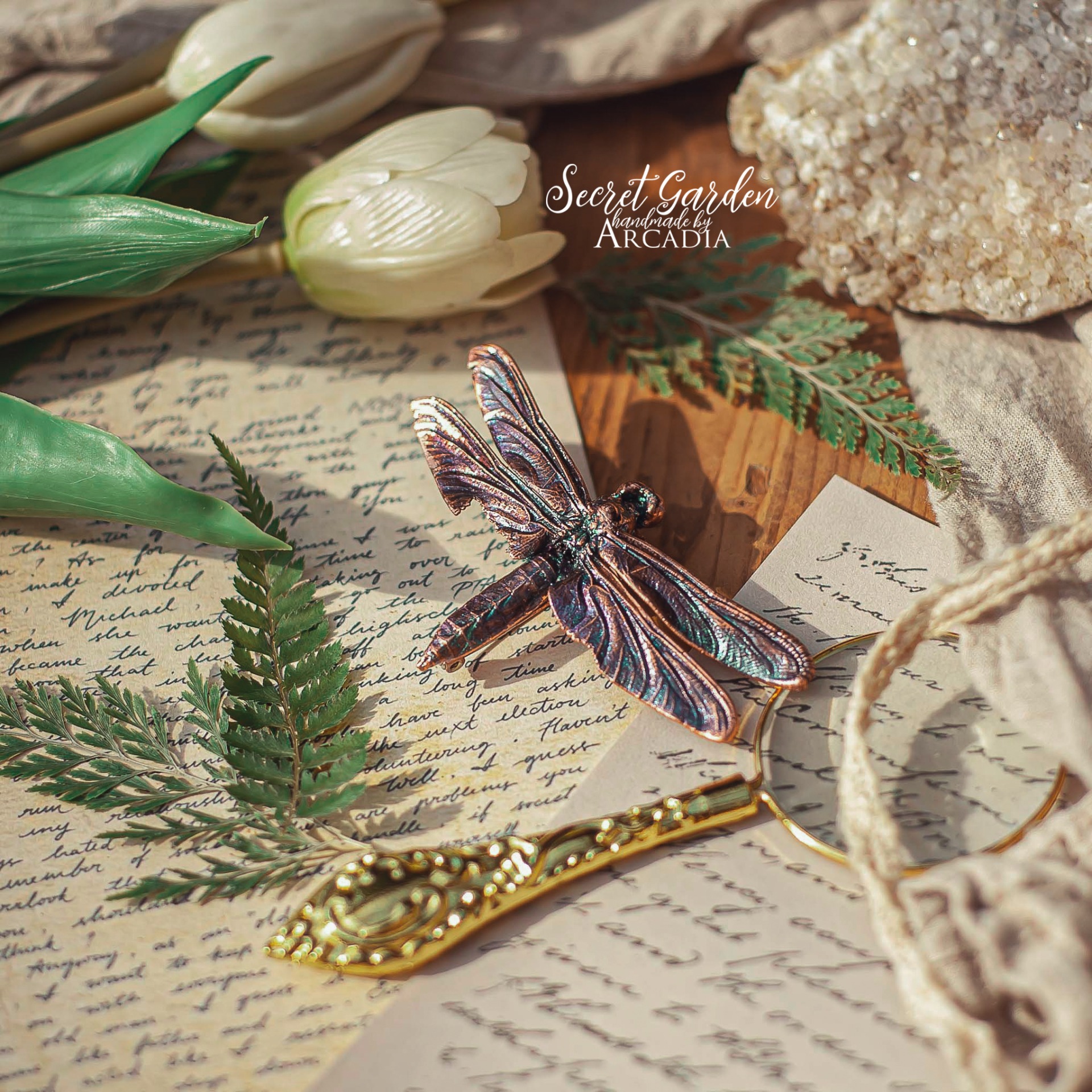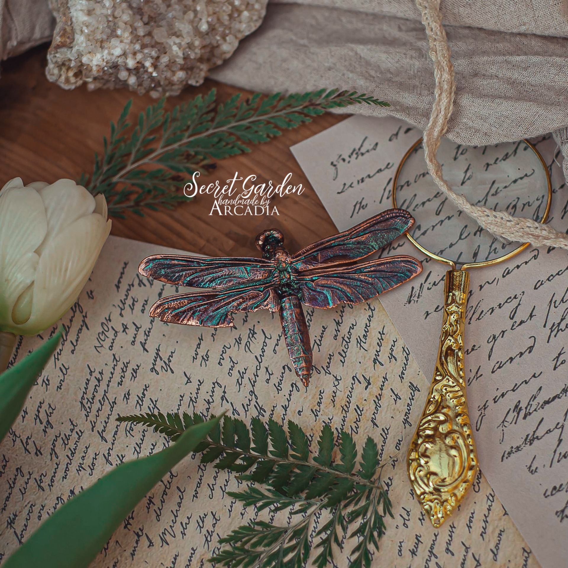 Brož se skutečnou pokovenou vážkou v olejově duhových měňavých odstínech. Vyrobeno rukama a srdcem v alchymistické dílně na severu Čech.
