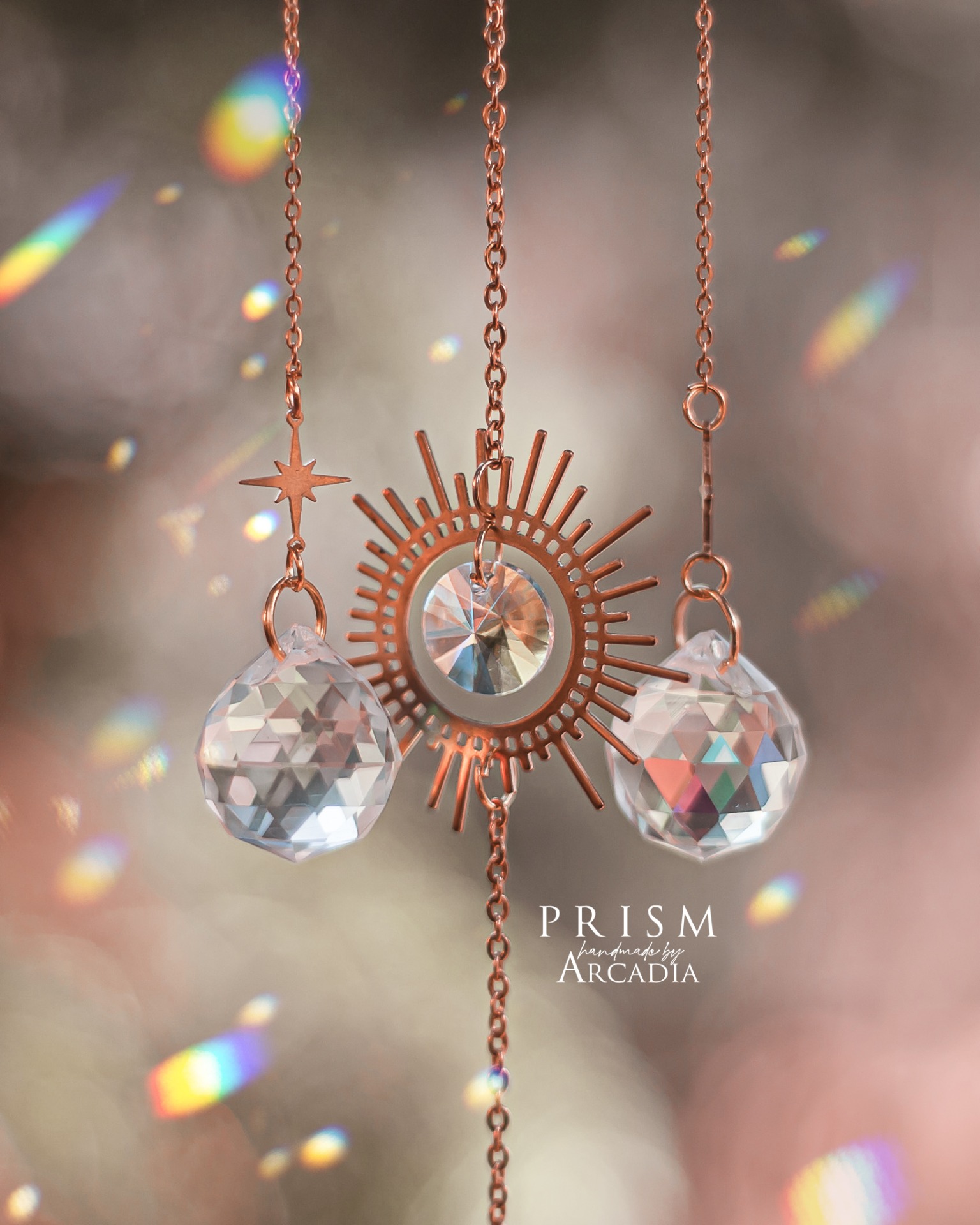 Lapač slunce z mosazných komponentů a broušeného skla přemění i ty úplně první paprsky jarního slunce v kouzelnou duhovou podívanou. Jedinečný šperk pro vaše doma vašemu obydlí dodá útulnou a čarokrásnou atmosféru. Vyrobeno rukama a srdcem v alchymistické dílně na severu Čech.