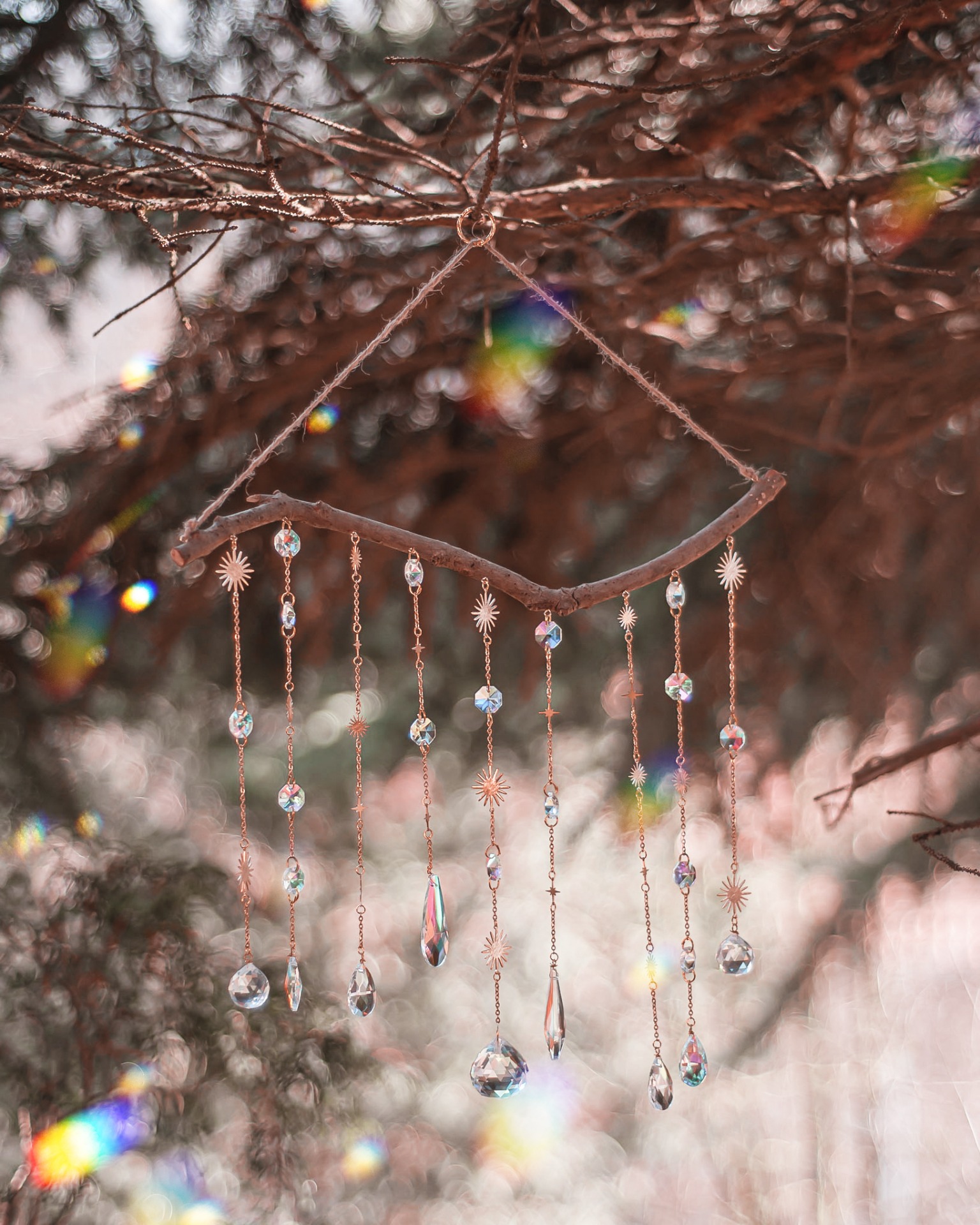 Lapač slunce z mosazných komponentů a broušeného skla přemění i ty úplně první paprsky jarního slunce v kouzelnou duhovou podívanou. Jedinečný šperk pro vaše doma vašemu obydlí dodá útulnou a čarokrásnou atmosféru. Vyrobeno rukama a srdcem v alchymistické dílně na severu Čech.