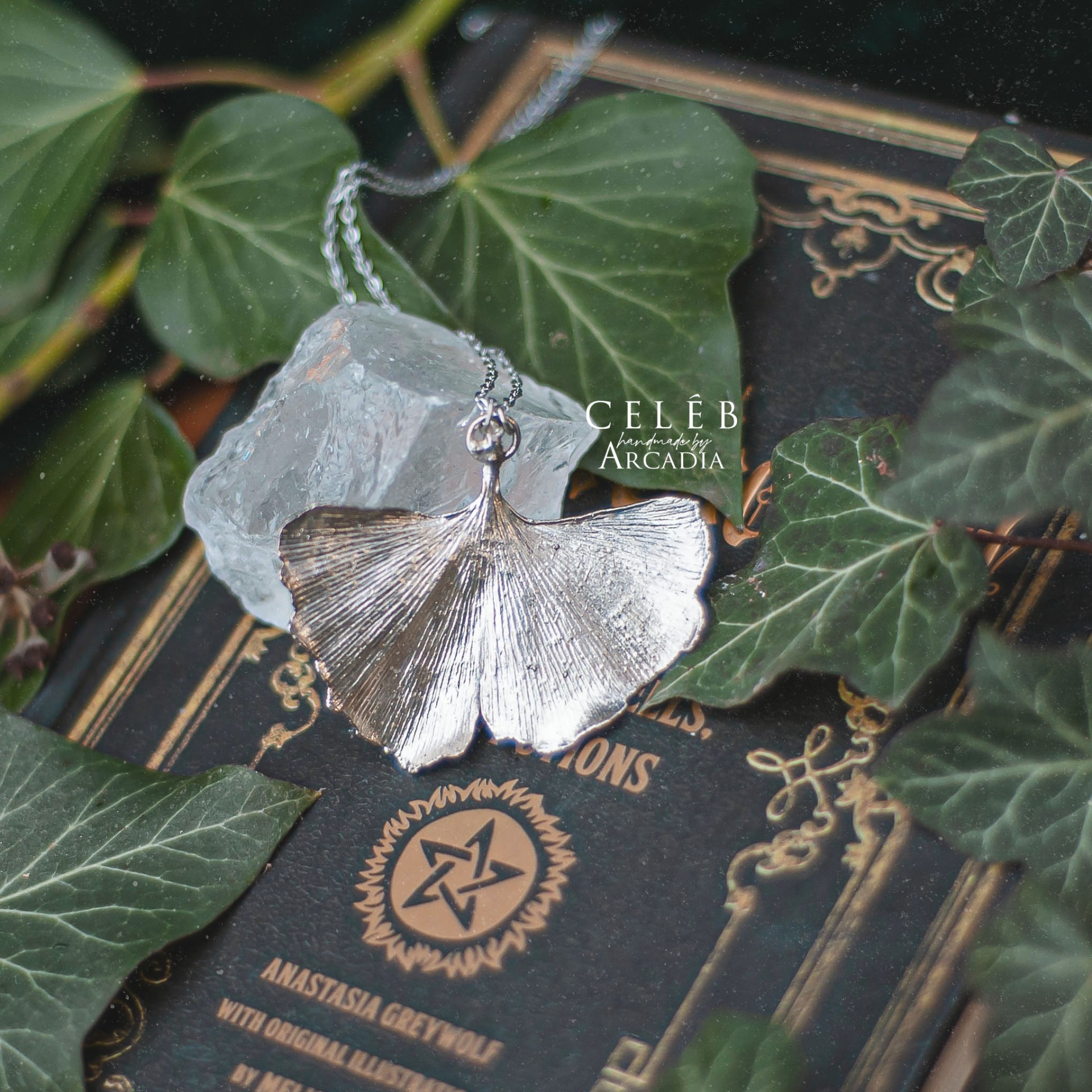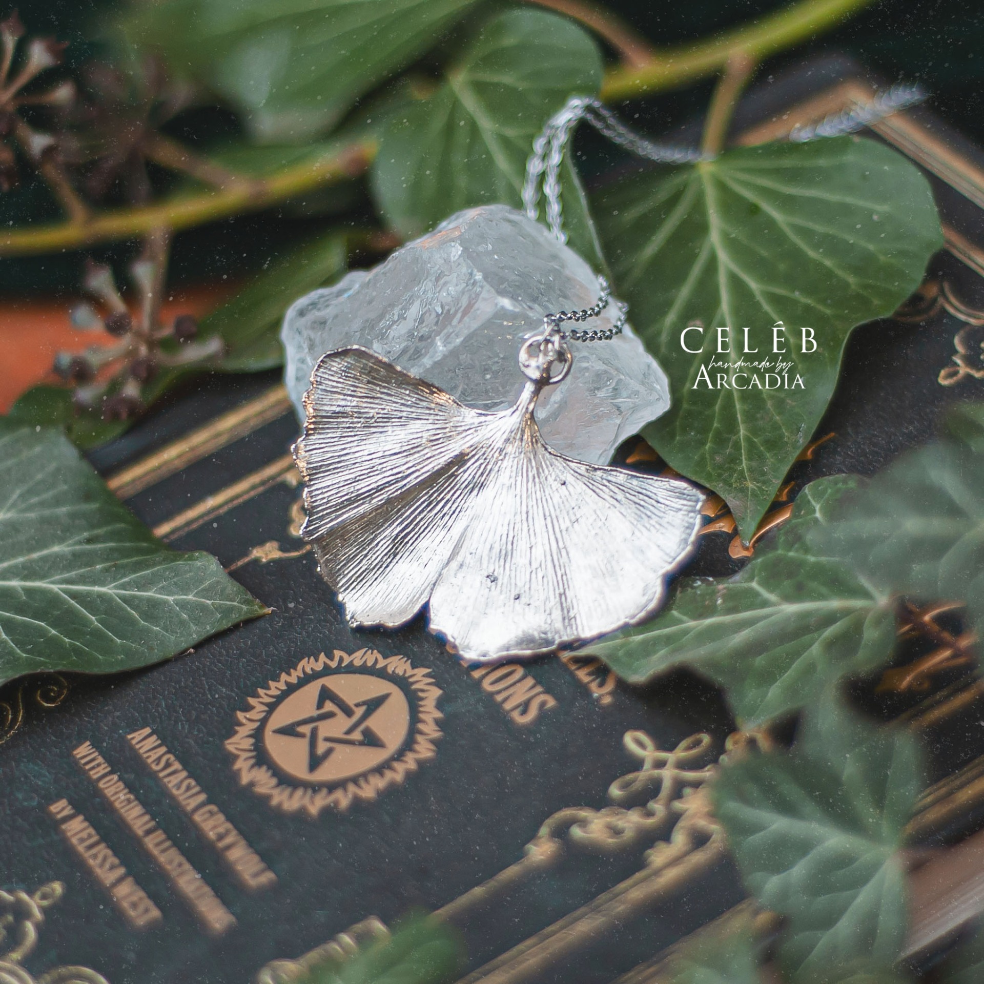 Náhrdelník se skutečným pokoveným lístkem ginka v ledově stříbrných odstínech. Jemný řetízek z nerezové oceli. Vyrobeno rukama a srdcem v alchymistické dílně na severu Čech.