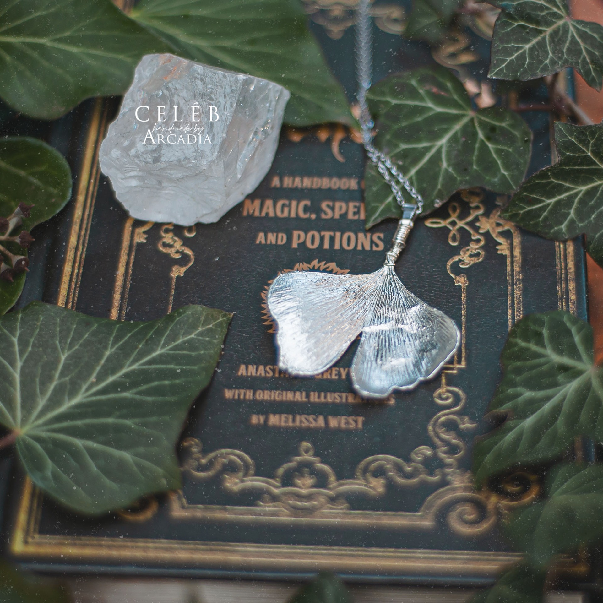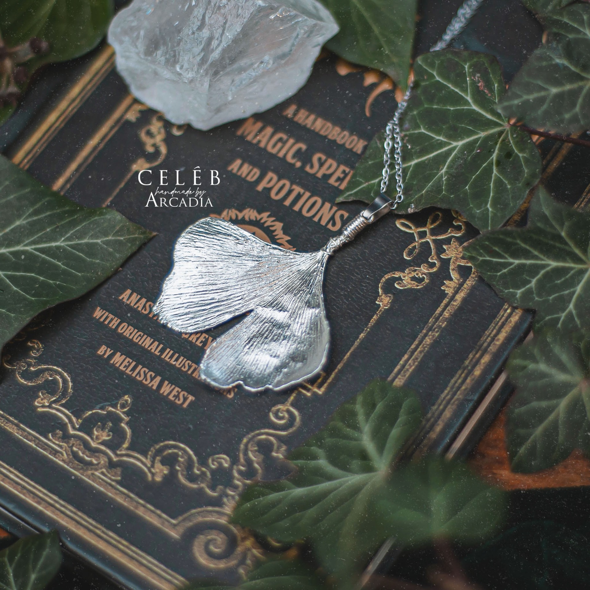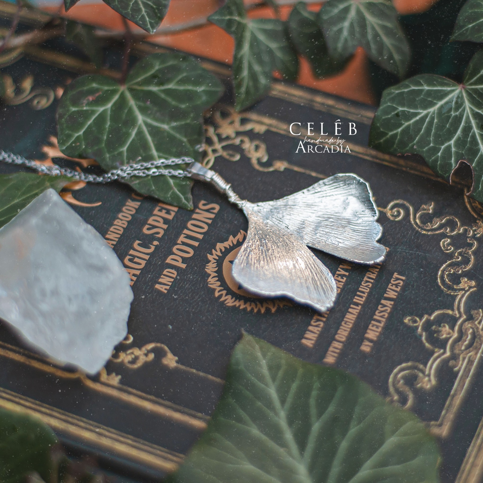 Náhrdelník se skutečným pokoveným lístkem ginka v ledově stříbrných odstínech. Jemný řetízek z nerezové oceli. Vyrobeno rukama a srdcem v alchymistické dílně na severu Čech.
