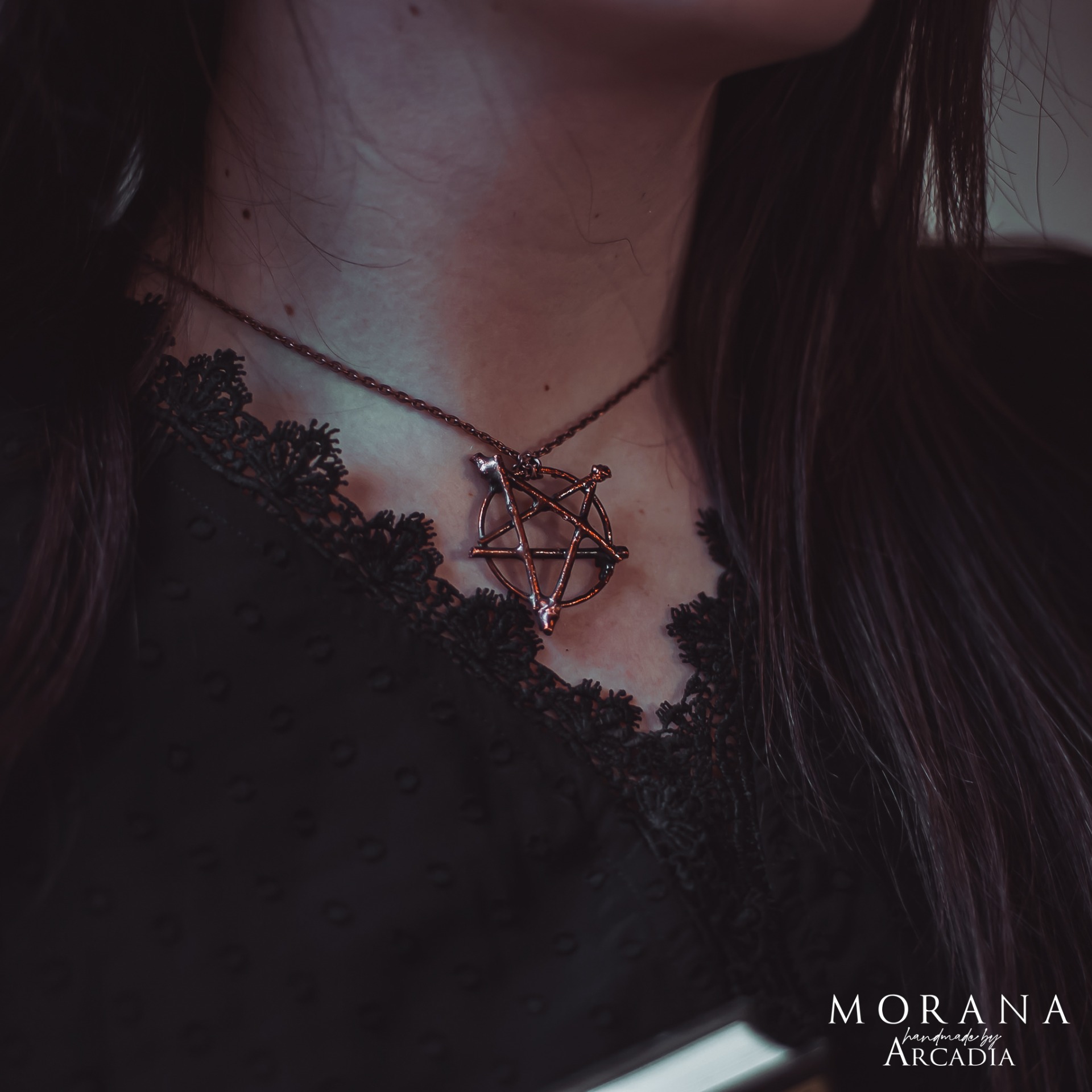 Náhrdelník s přívěskem ze skutečných pokovených větviček ve tvaru pentagramu ve vintage staroměděné patině. Must have každodenní ochrana pro každou praktikující čarodějku. Vyrobeno rukama a srdcem v alchymistické dílně na severu Čech.