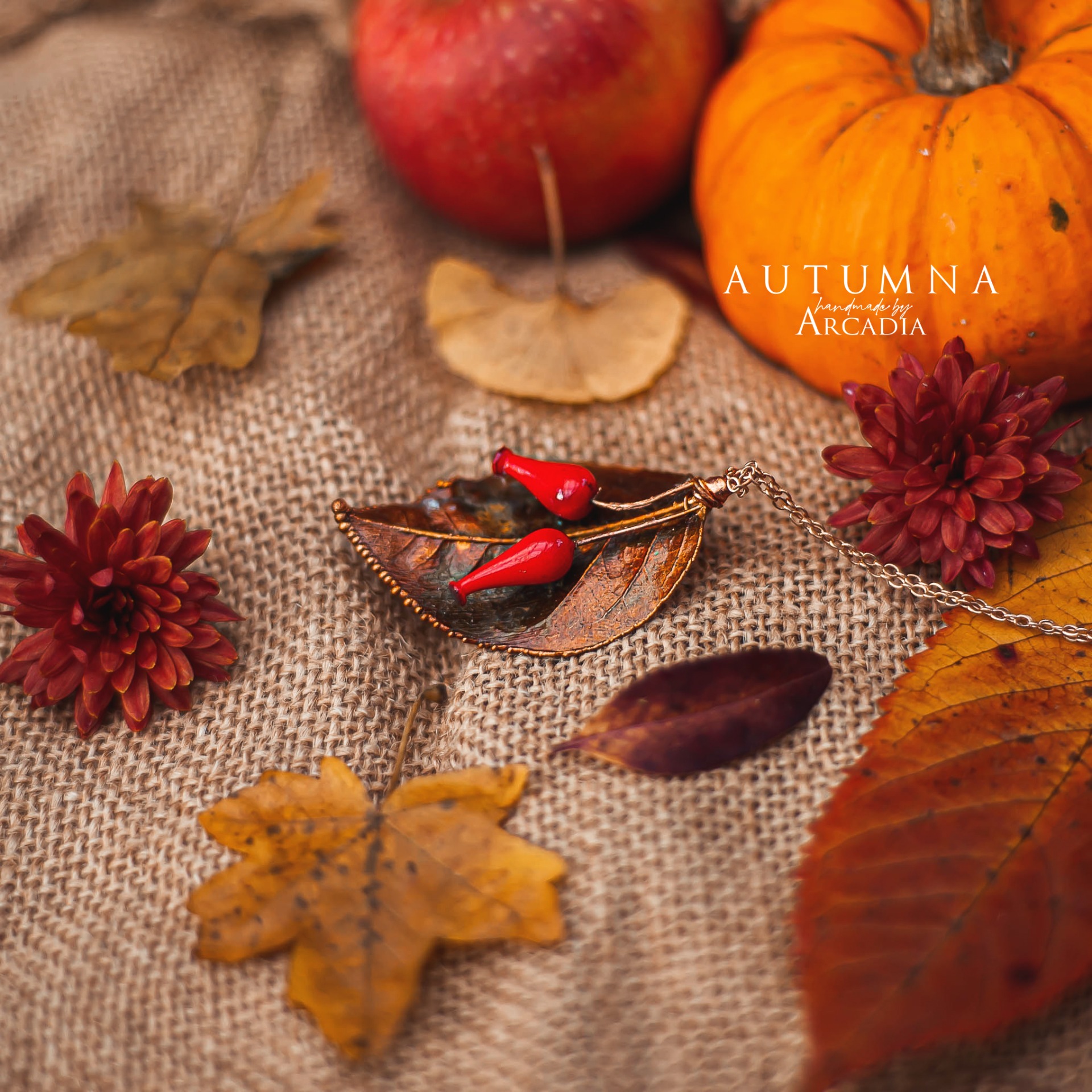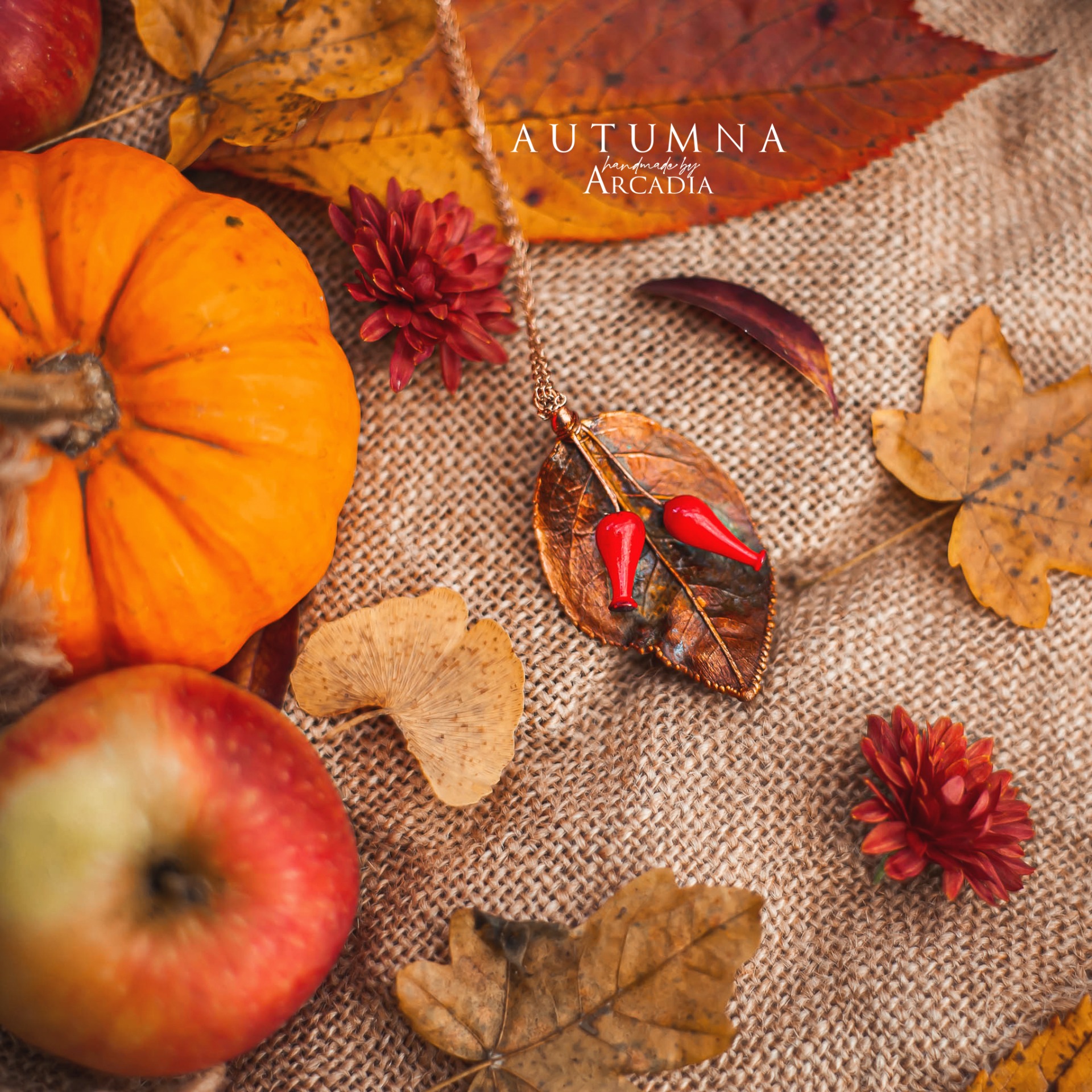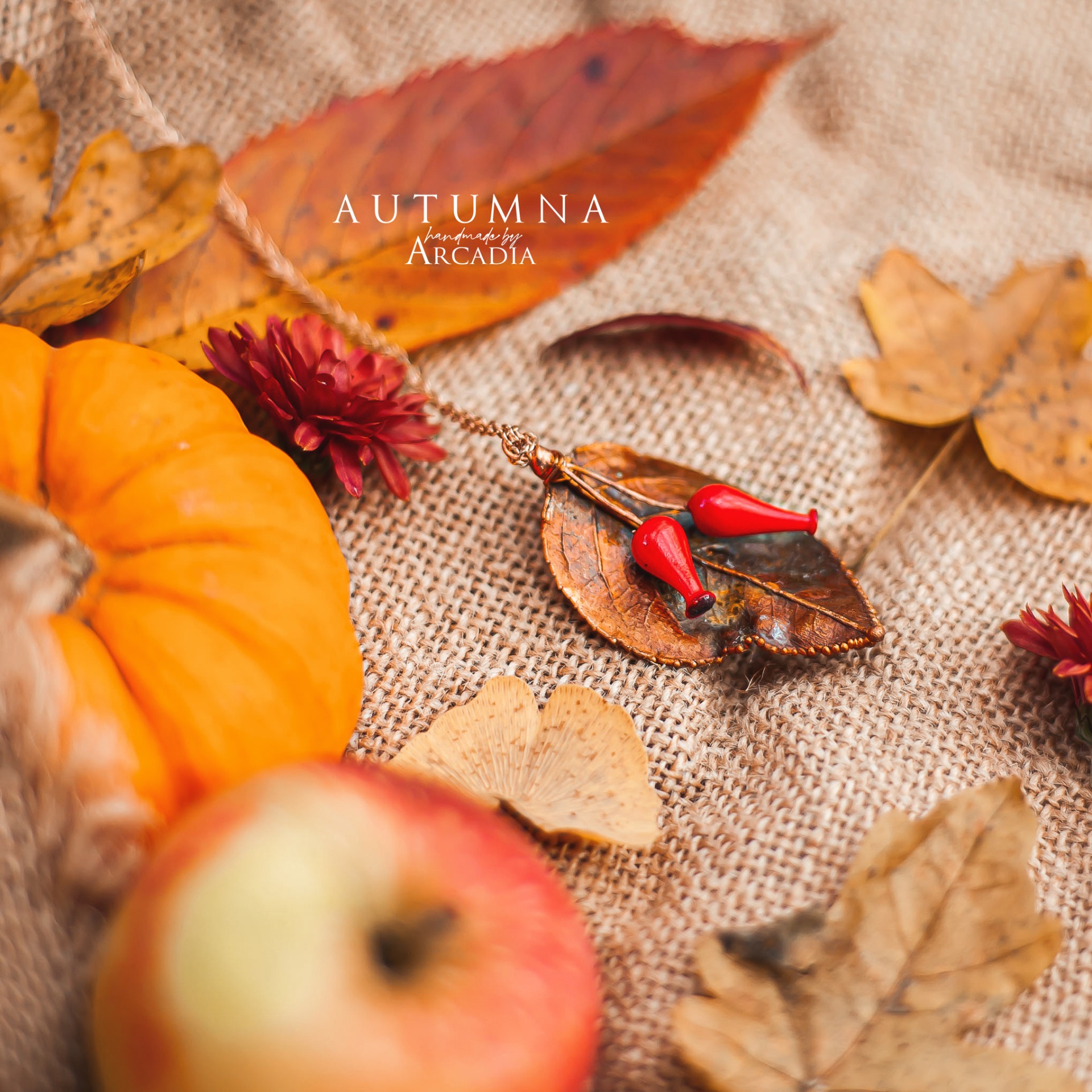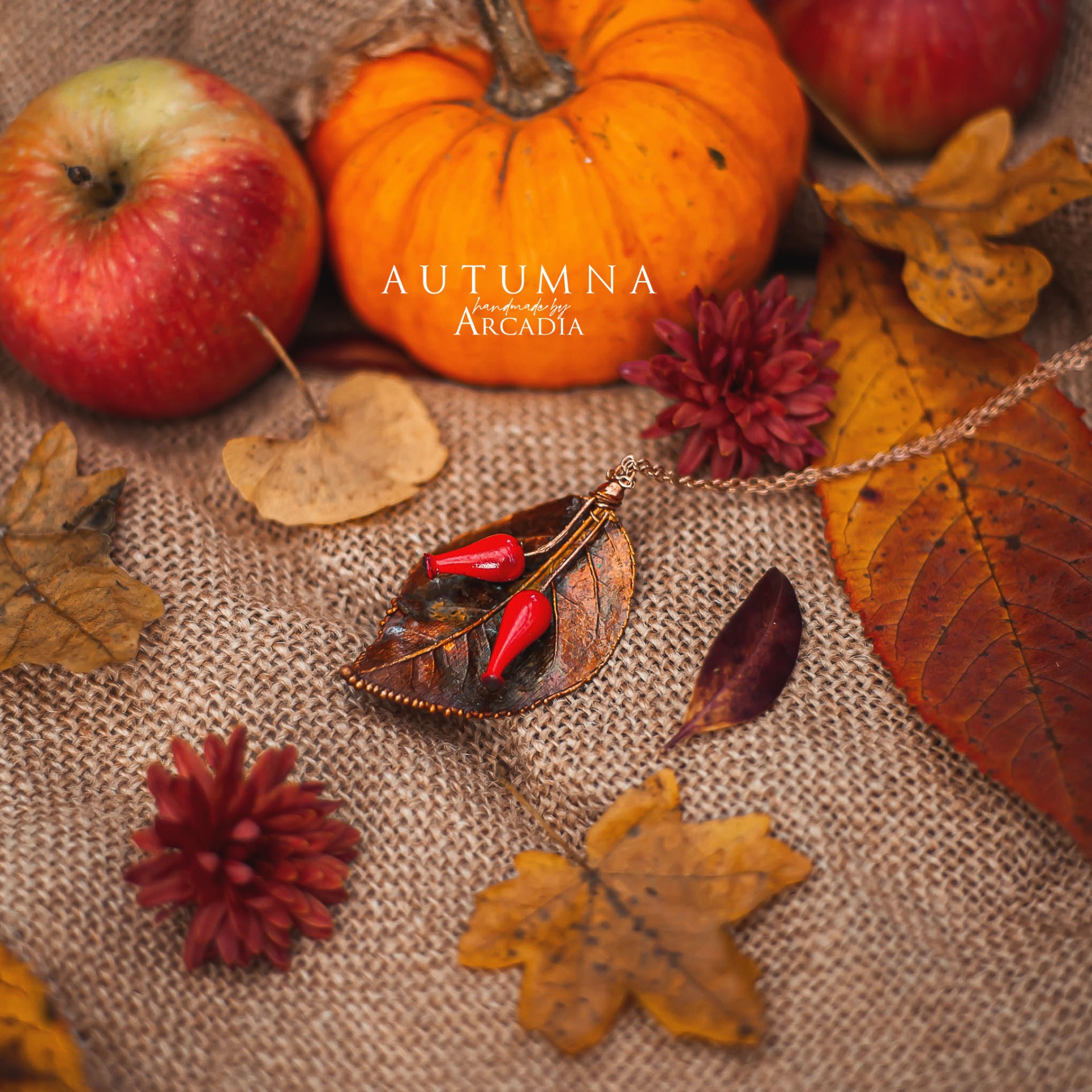 Náhrdelník s přívěskem ze skutečných pokovených lístků z šípkového keře, ozdobenými šípky z českého ručně vinutého skla. Jemný nerezový řetízekv barvě růžového zlata. Vyrobeno rukama a srdcem v alchymistické dílně na severu Čech.