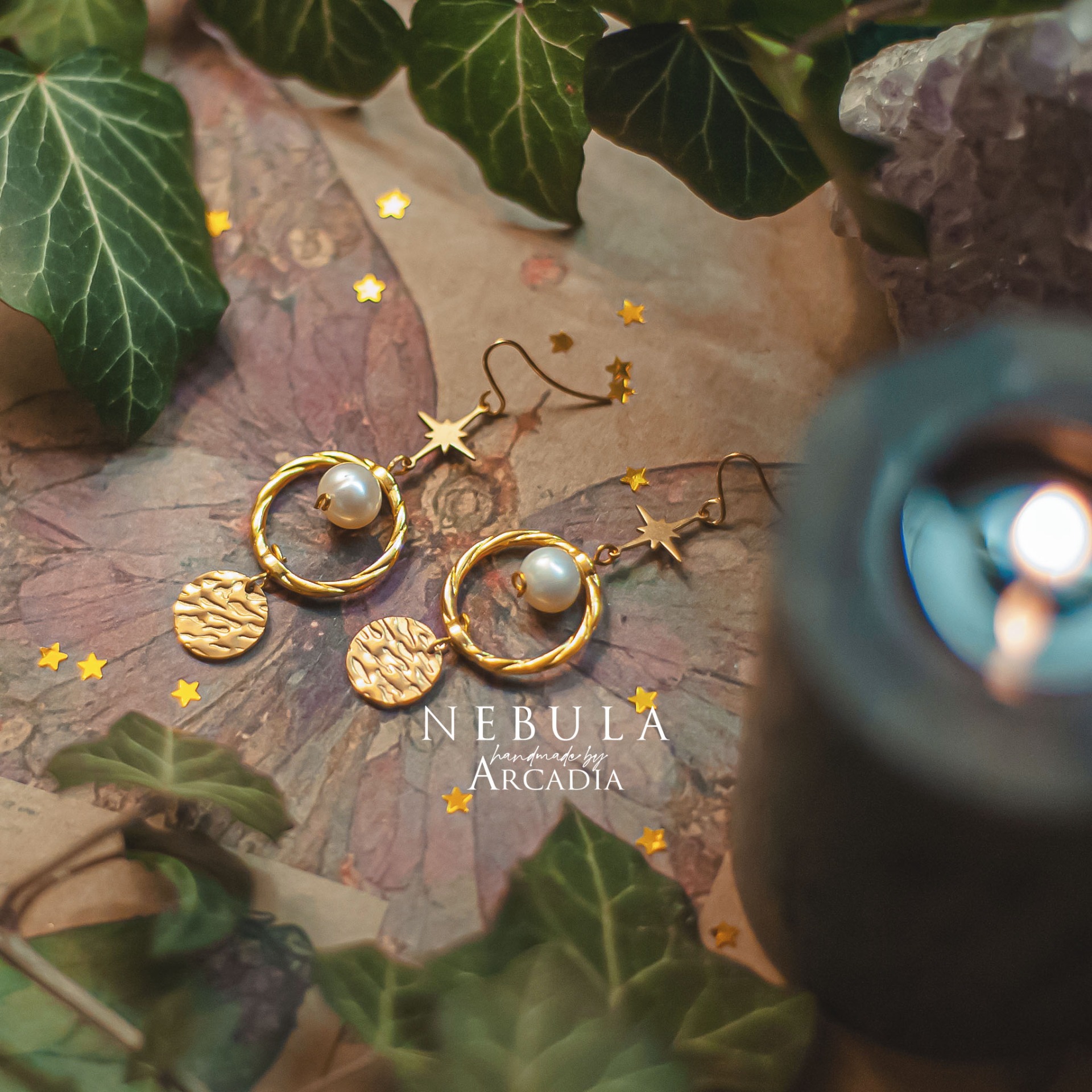 Visací náušničky s pravou říční perlou. Vyrobeno rukama a srdcem v alchymistické dílně na severu Čech.