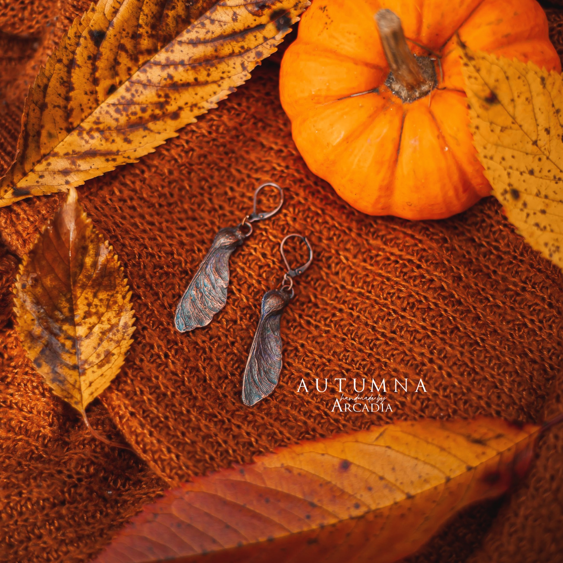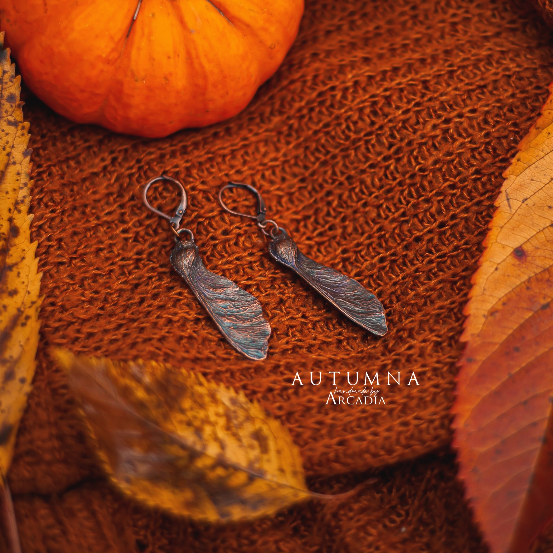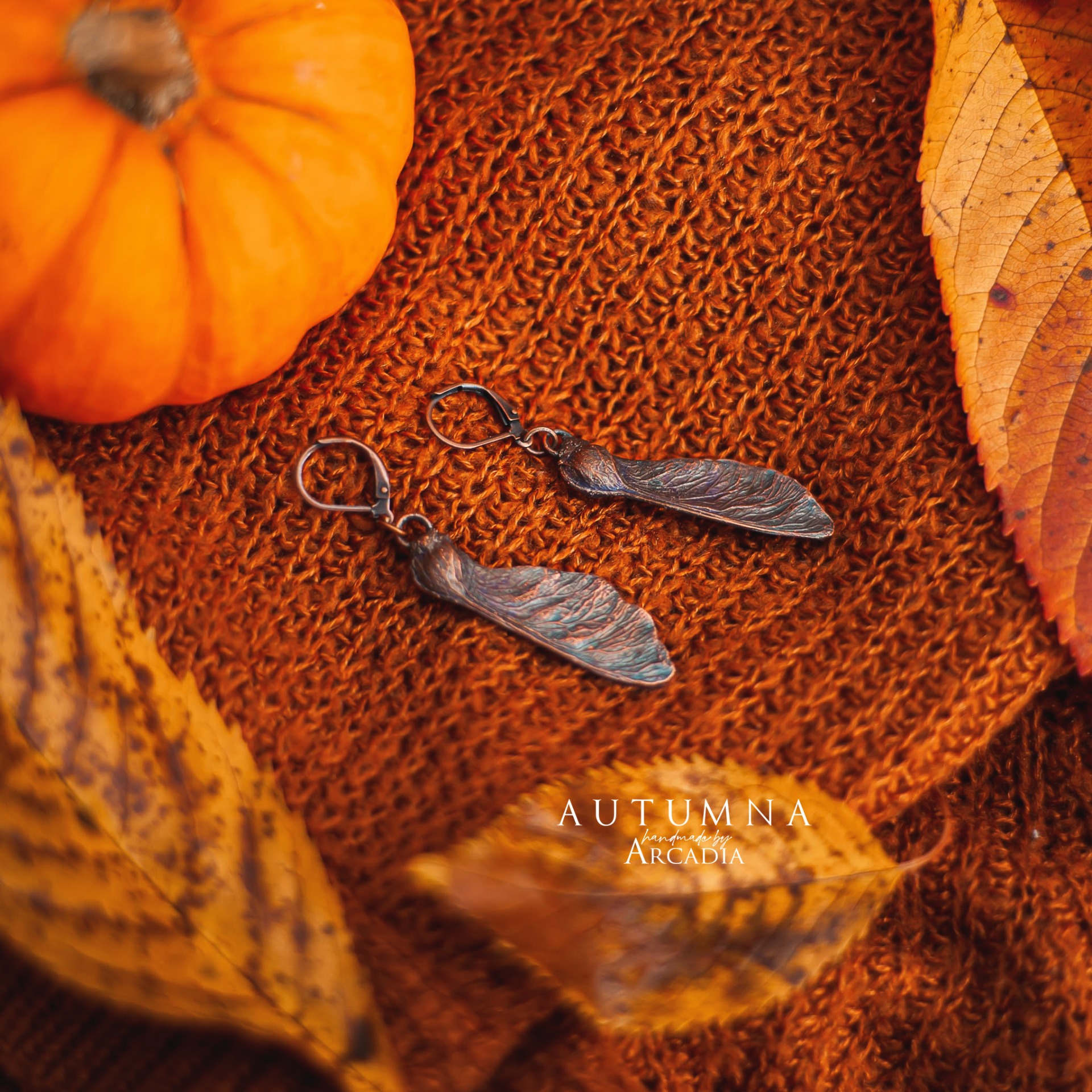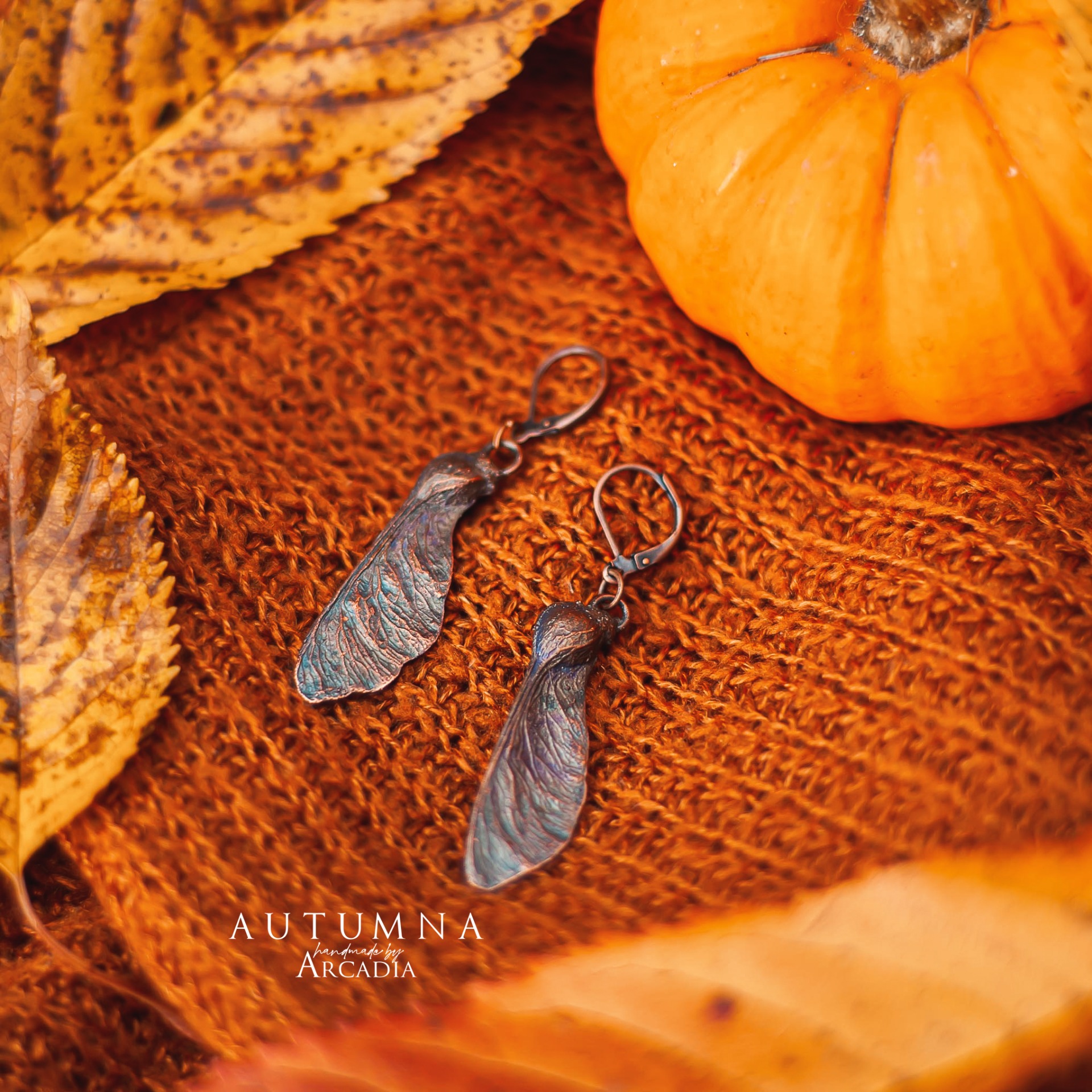 Náušnice ze skutečných pokovených nažek jinanu. Bižuterní zavírací náušnicové háčky. Vyrobeno rukama a srdcem v alchymistické dílně na severu Čech.