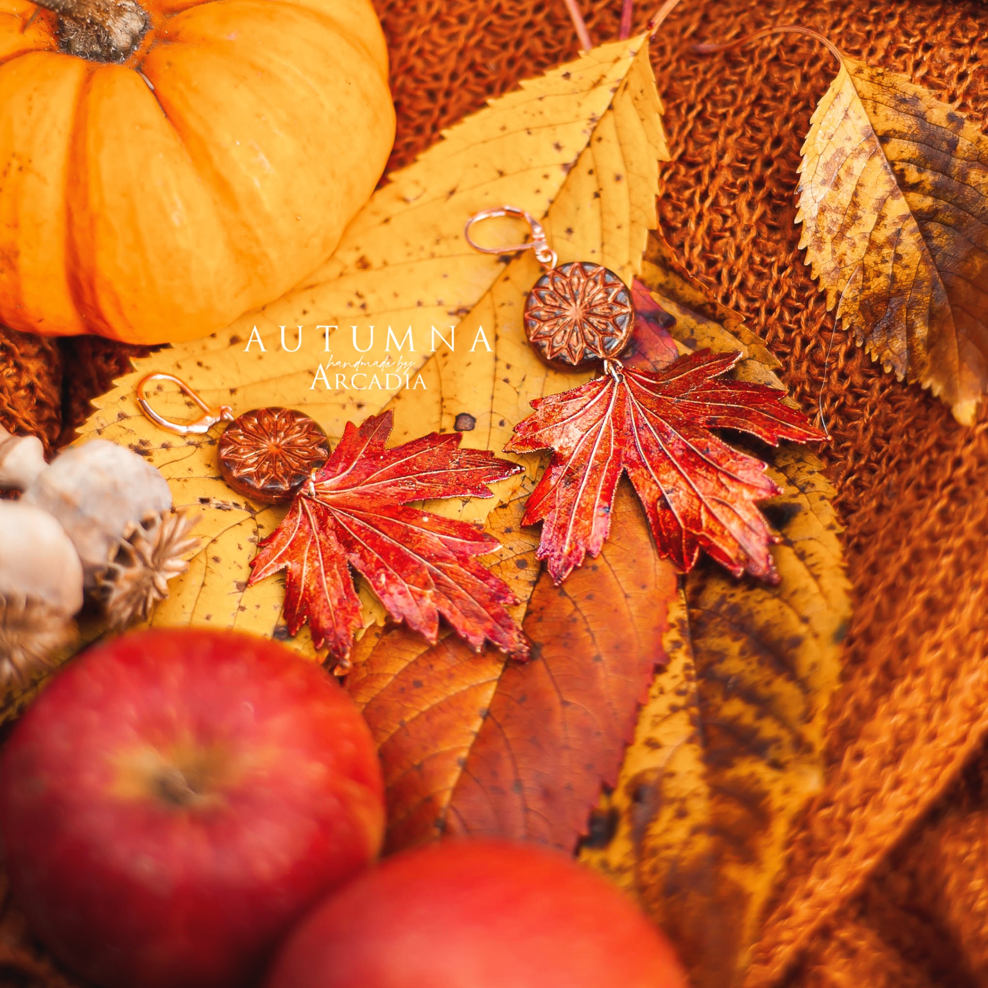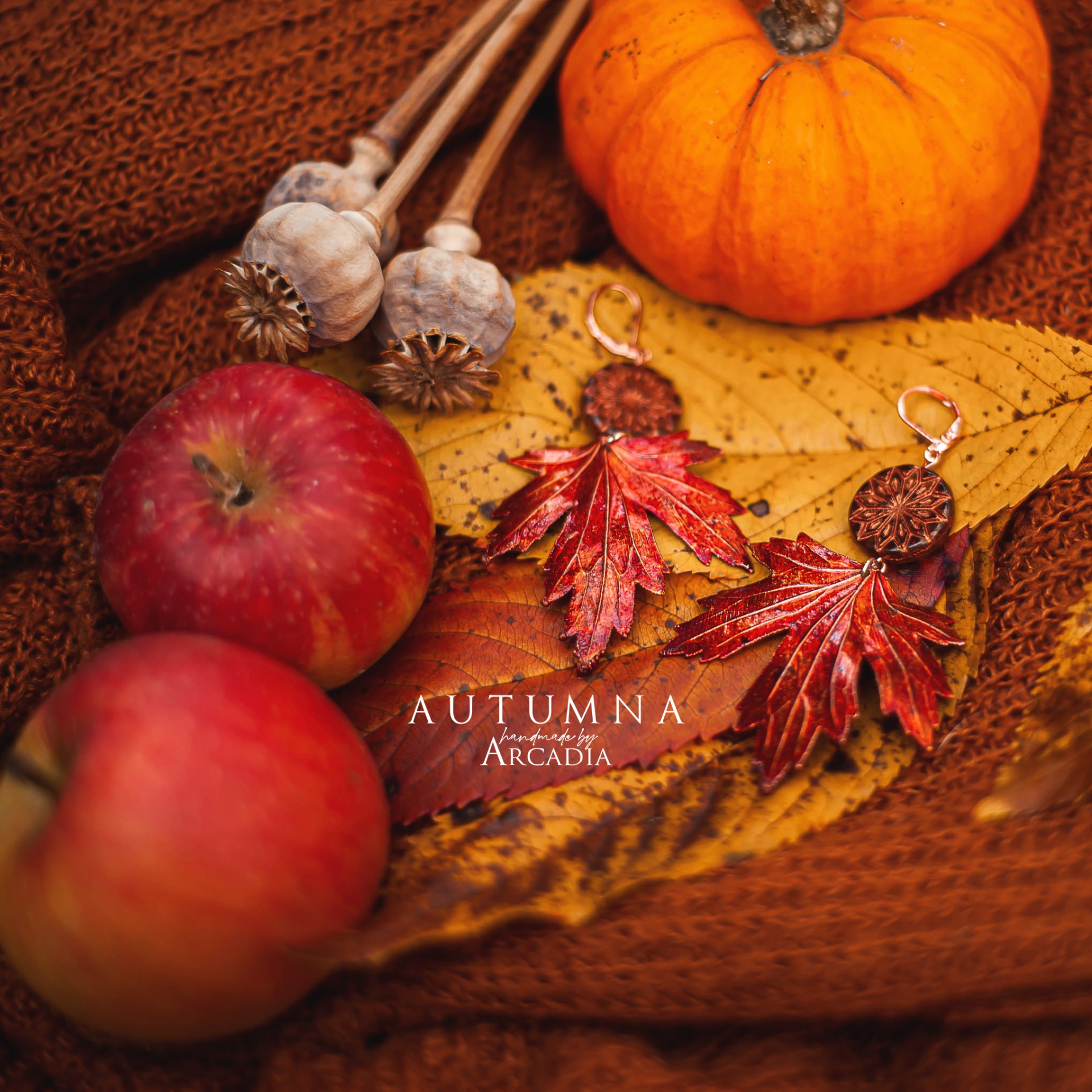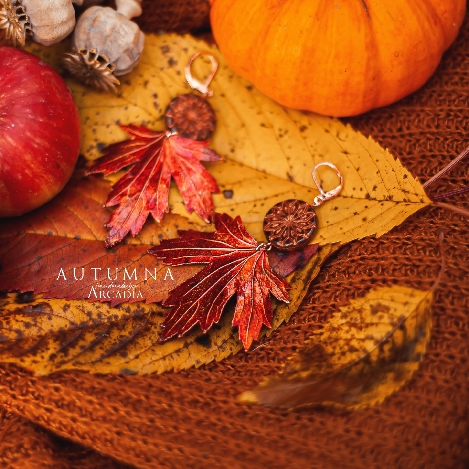 Náušnice ze skutečných pokovených lístků angreštu, ozdobené českými skleněnými korálky. Zavírací náušnicové háčky z nerezové oceli pokovené růžovým zlatem. Vyrobeno rukama a srdcem v alchymistické dílně na severu Čech.