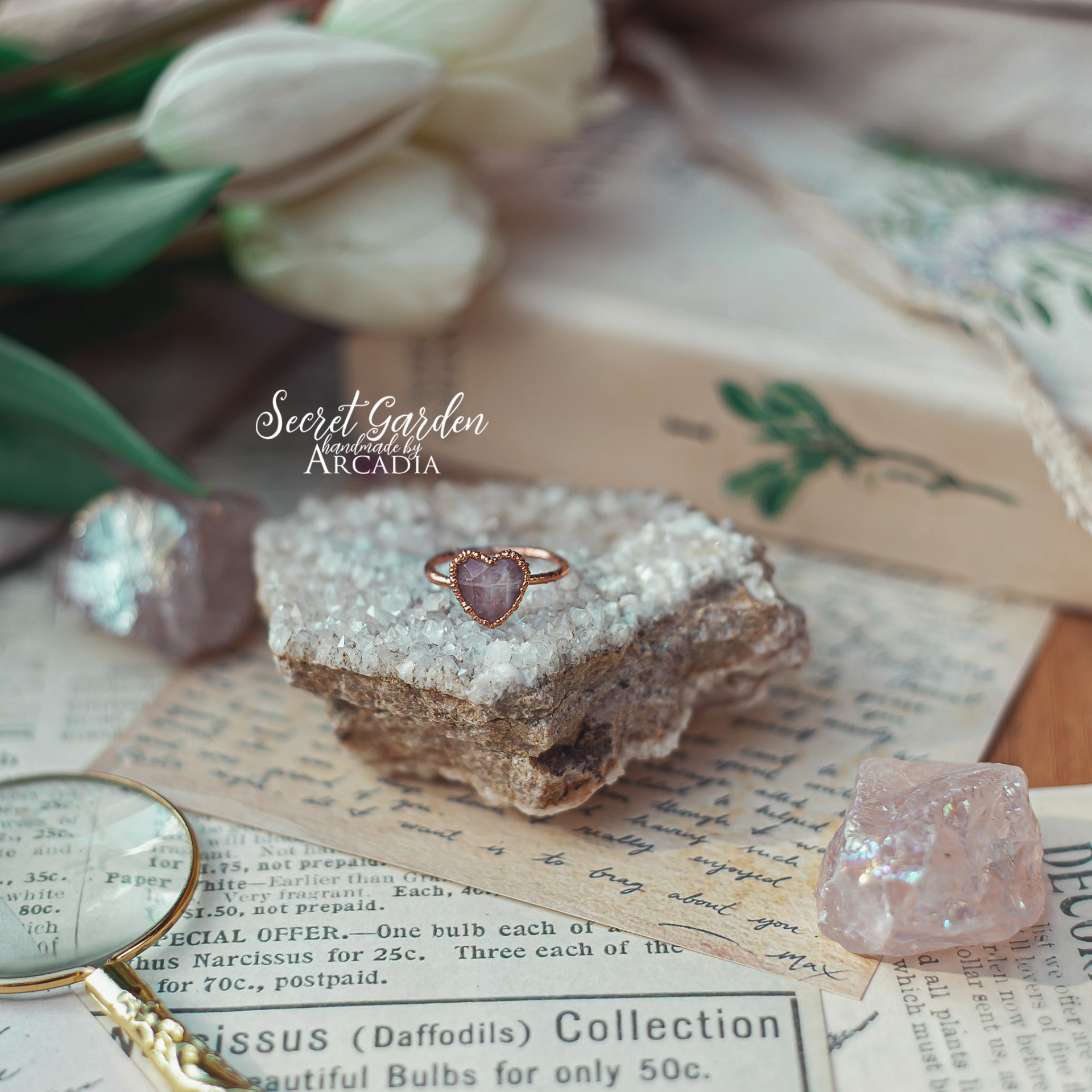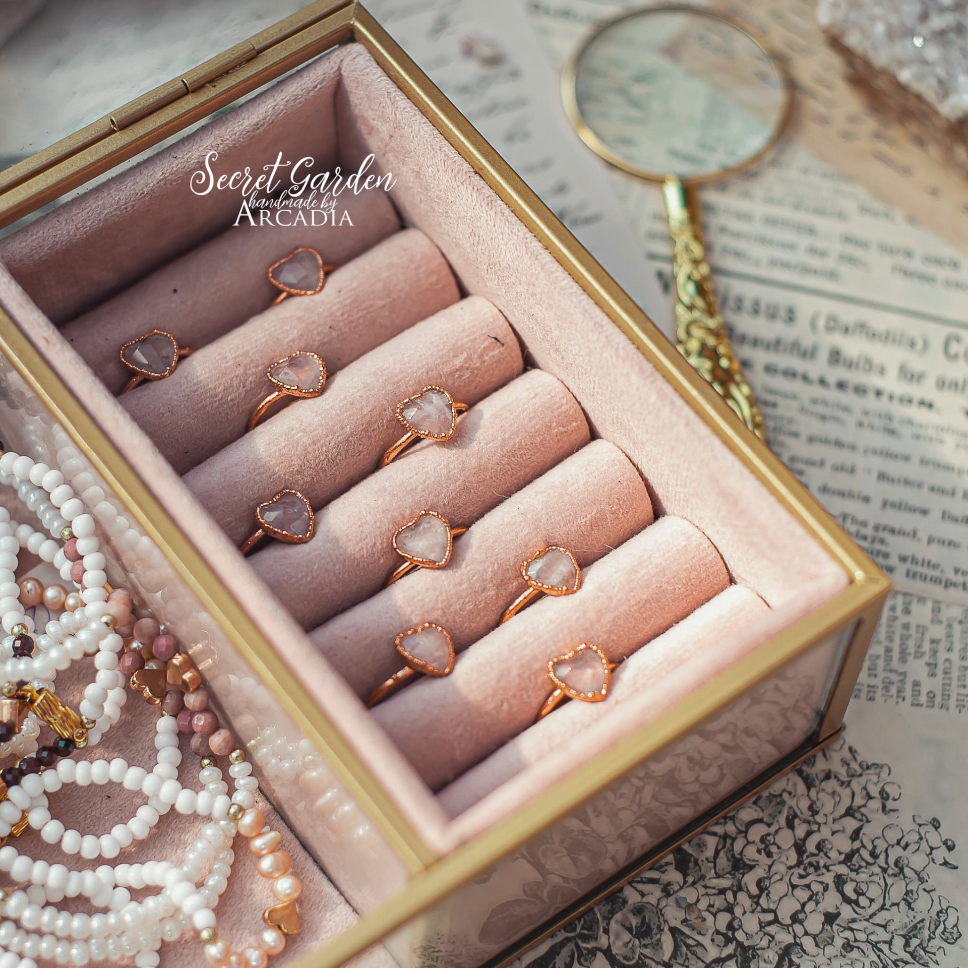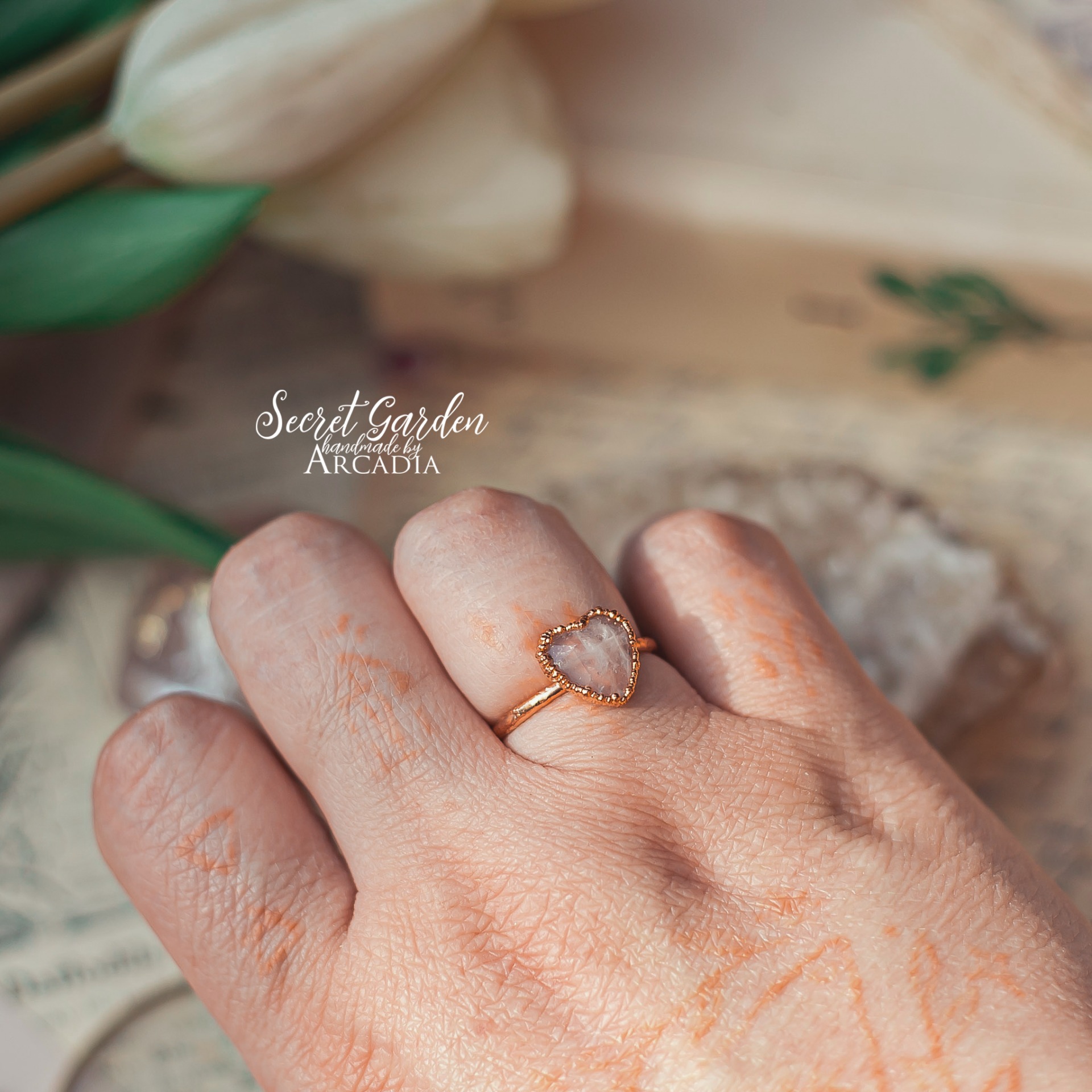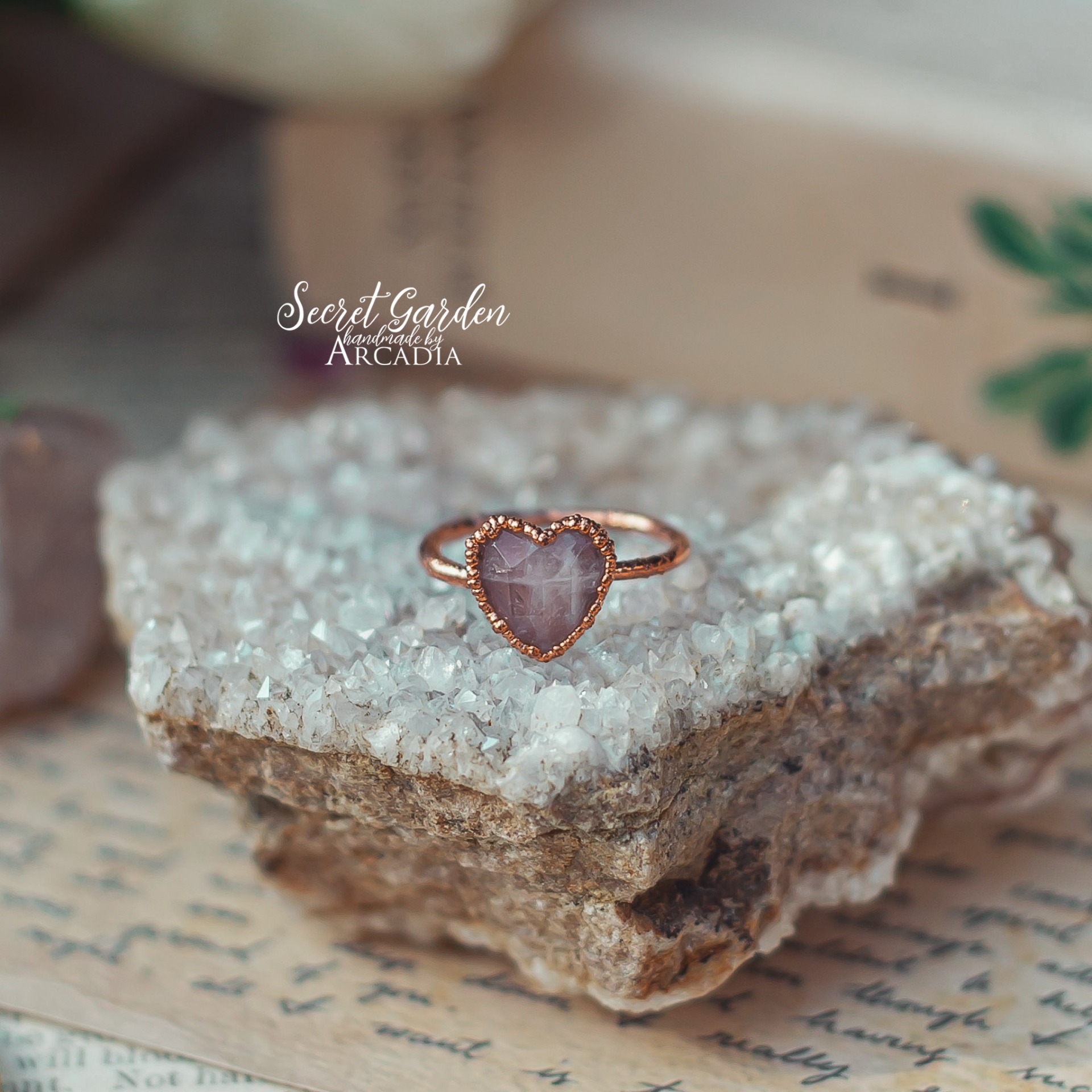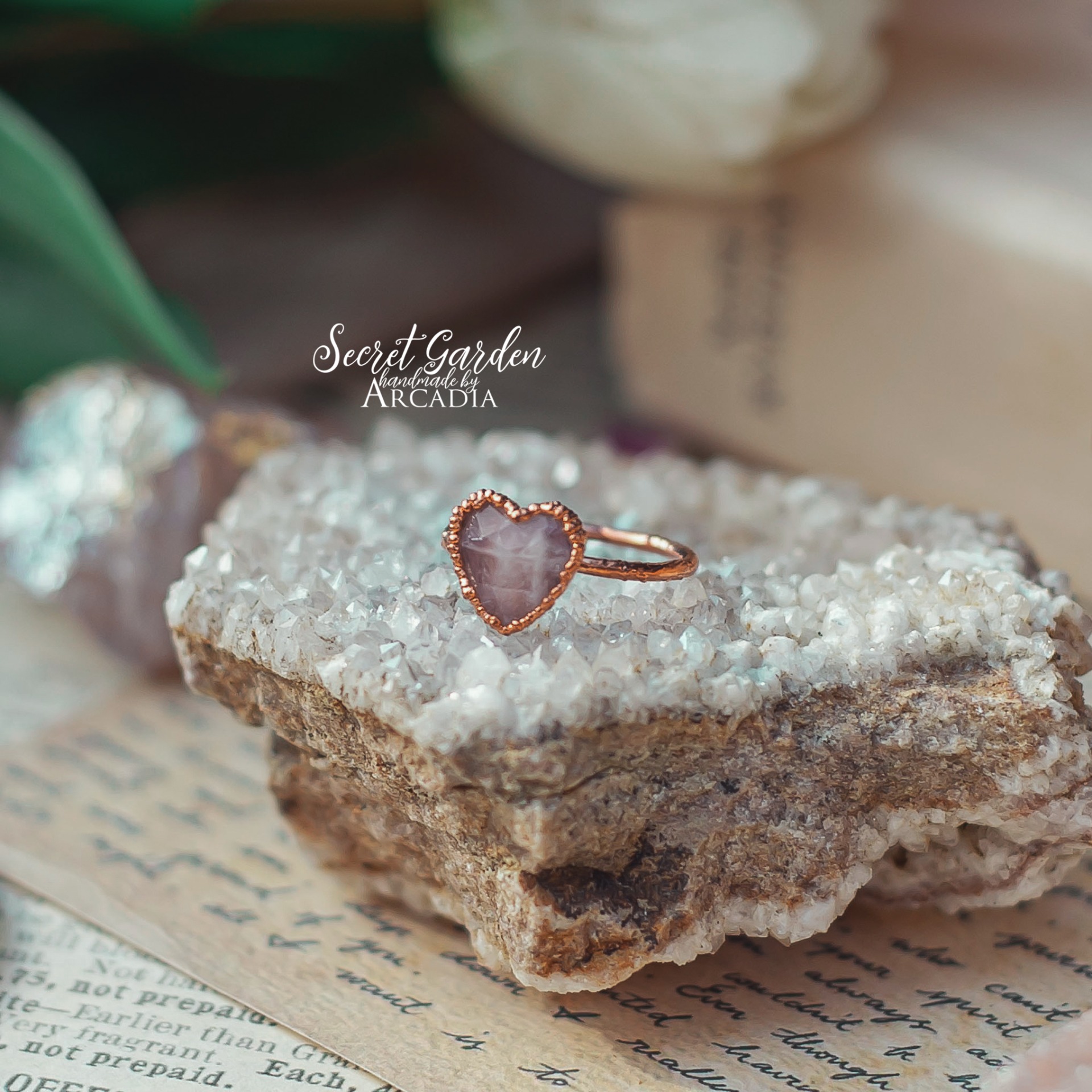 Měděný prstýnek s broušeným srdíčkem z růženínu, připomínající retro prstýnky z pouti. Vyrobeno rukama a srdcem v alchymistické dílně na severu Čech.
