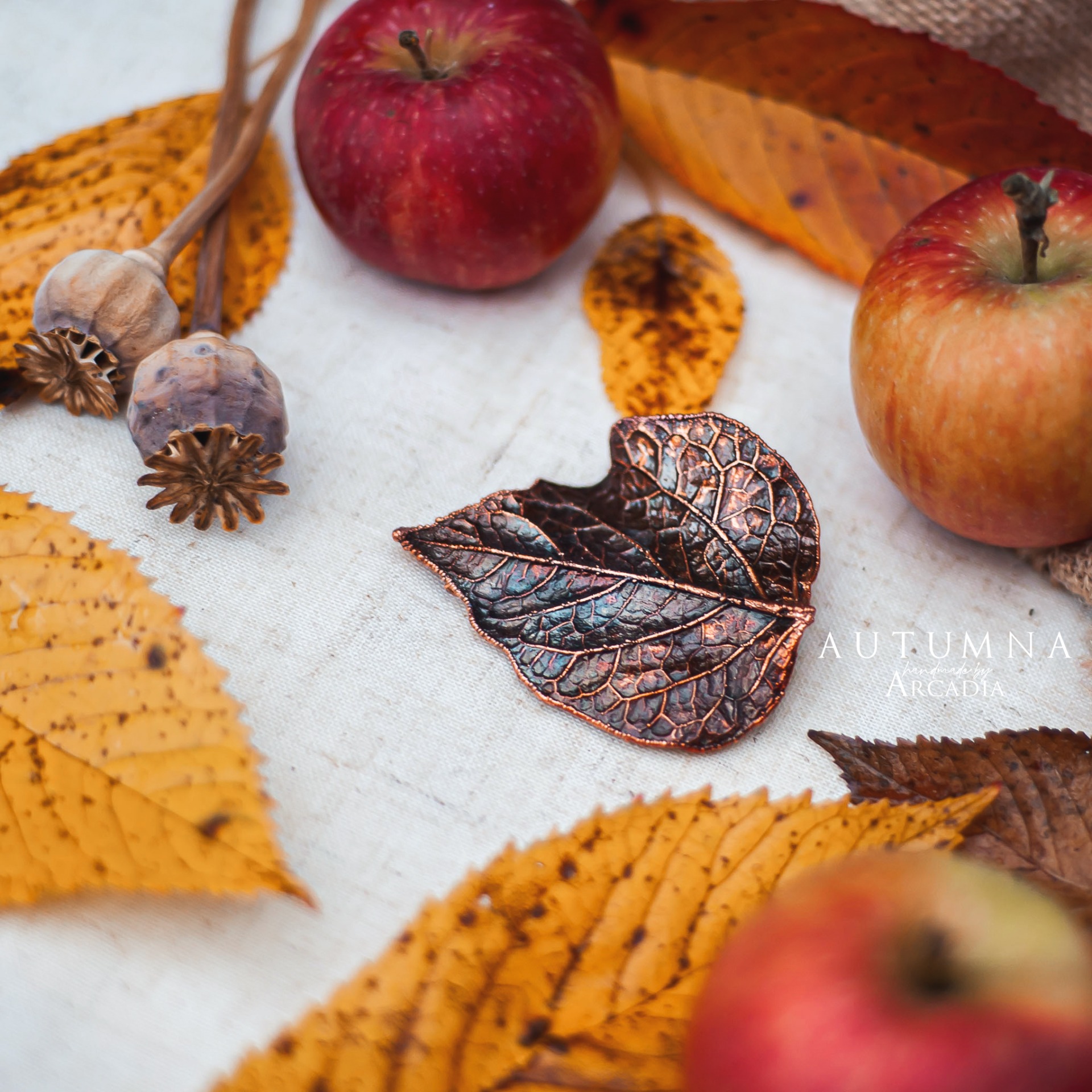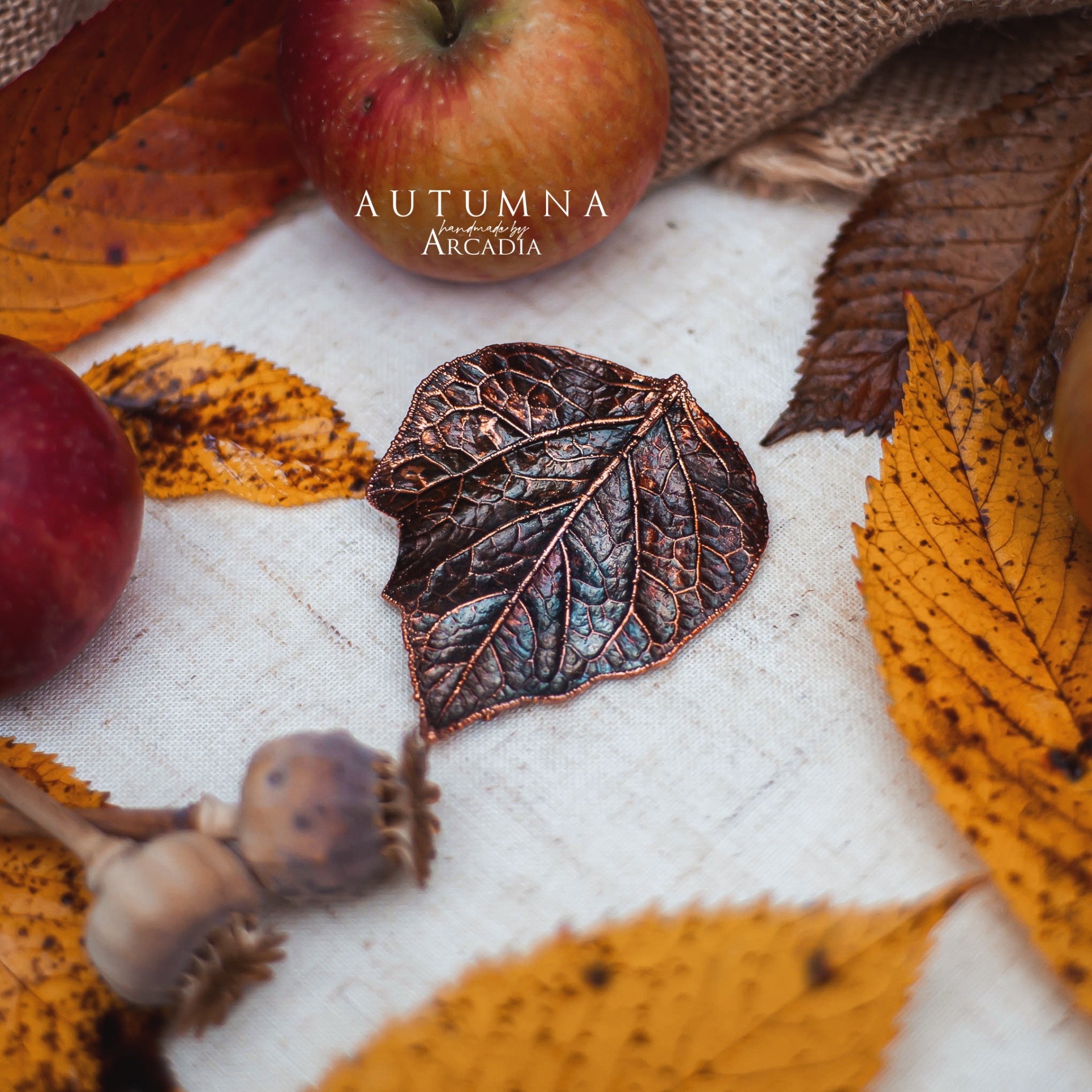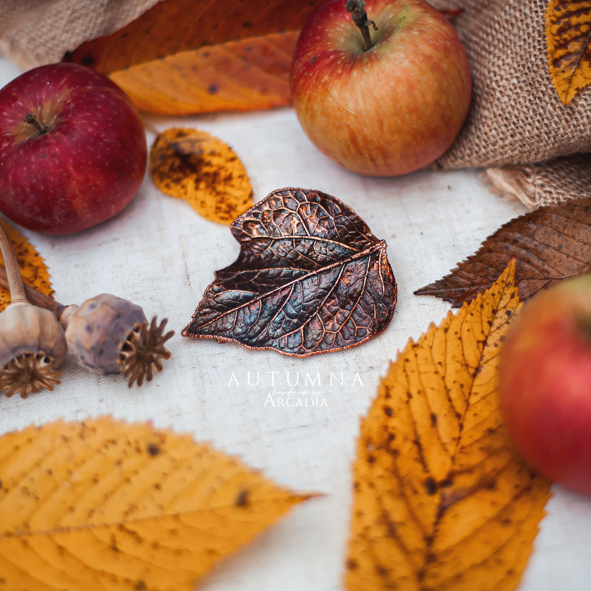 Spona do vlasů ze skutečného pokoveného lístku mochyně v olejově duhové patině. Vyrobeno rukama a srdcem v alchymistické dílně na severu Čech.