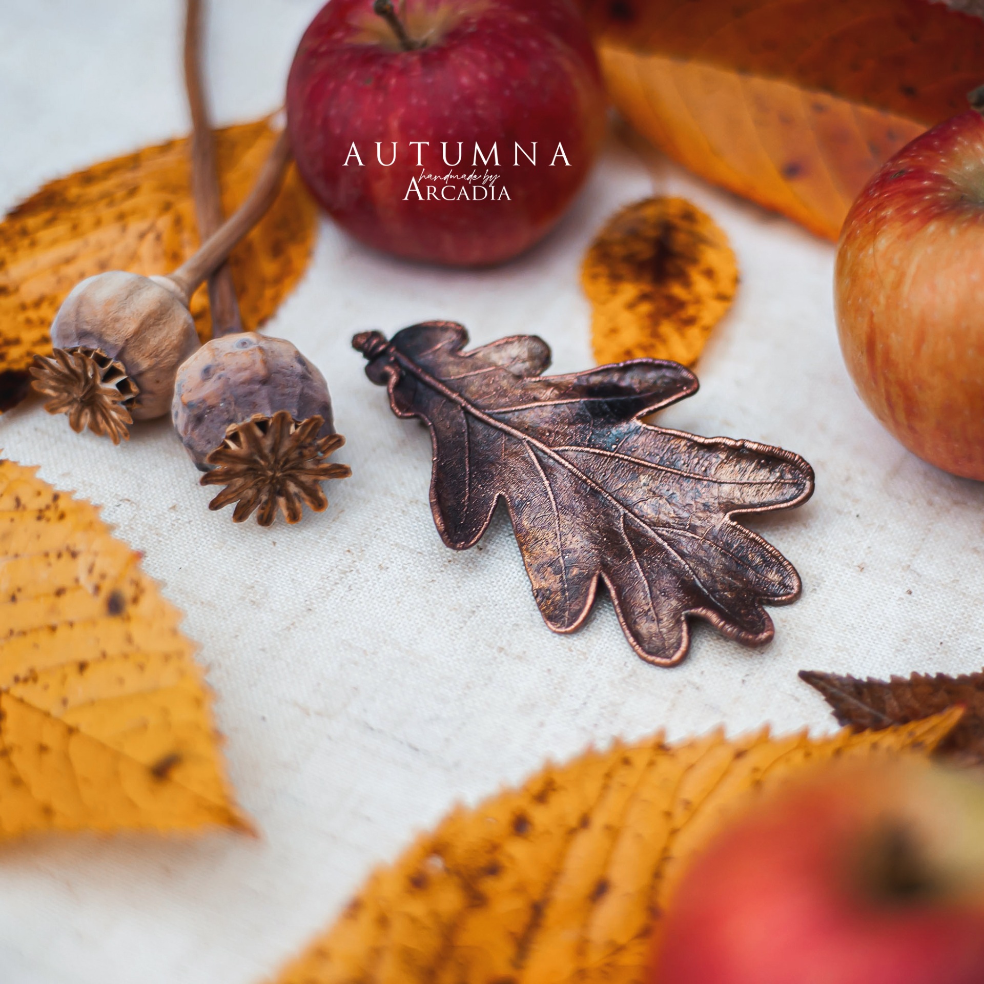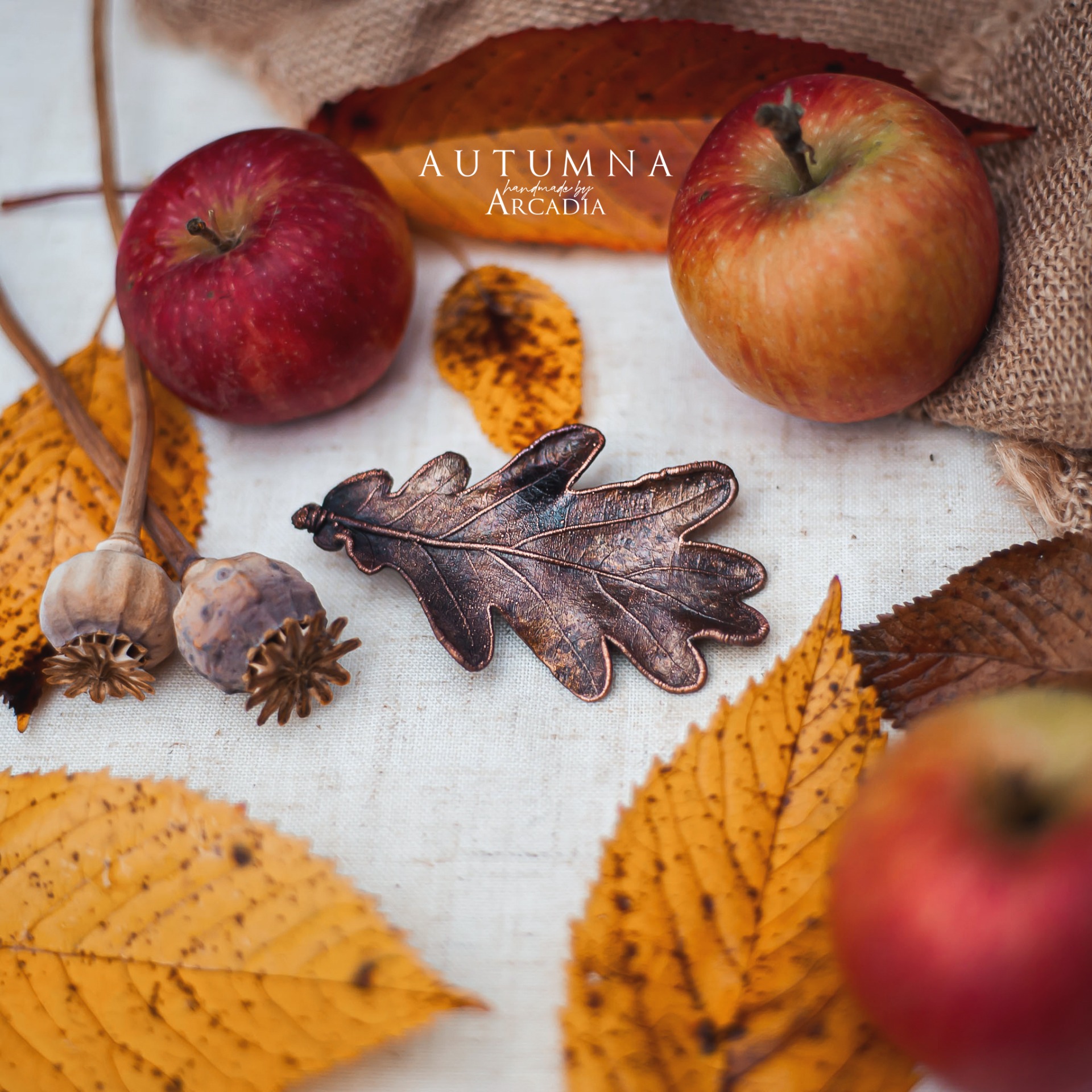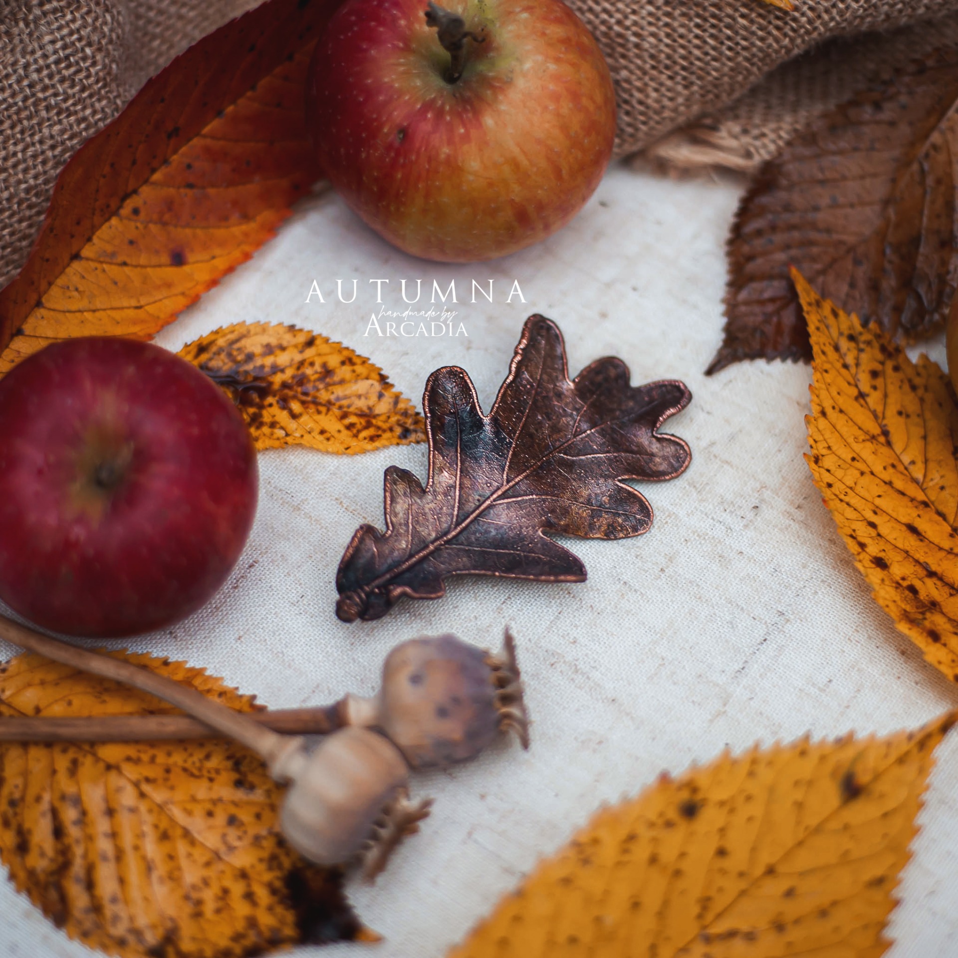 Spona do vlasů ze skutečného pokoveného lístku dubu v rustikální antické patině. Vyrobeno rukama a srdcem v alchymistické dílně na severu Čech.